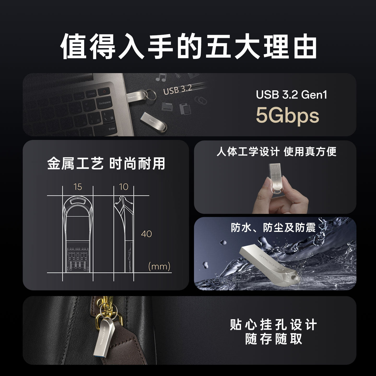 128GB 迷你电脑U盘大容量金属64GB USB3.2高速电脑办公 C222 十铨