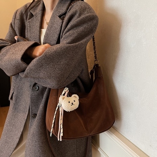 韩国麂皮绒腋下包包女2025新款 潮秋冬复古托特包简约大容量通勤包
