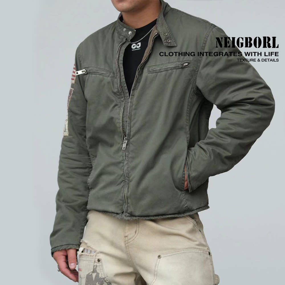 潮流水洗复古百搭休闲机车棉服夹克 NEIGBORL钊叔制美式 野马67