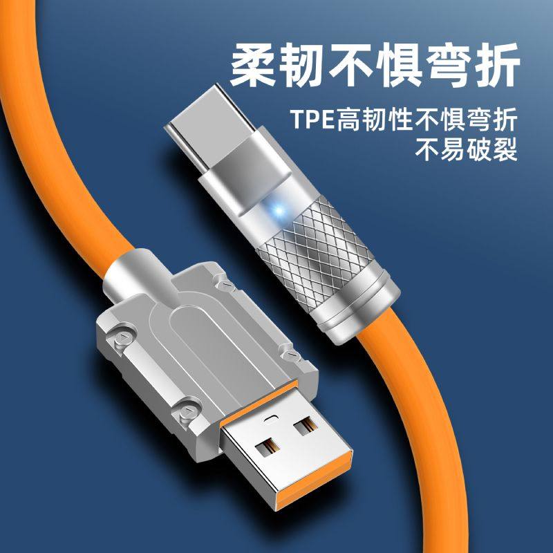倩梅超级快充数据线typec适用华为荣耀手机66w 120w充电线加粗锌合金tpyec安卓扁圆口通用软硅胶防冻防折断