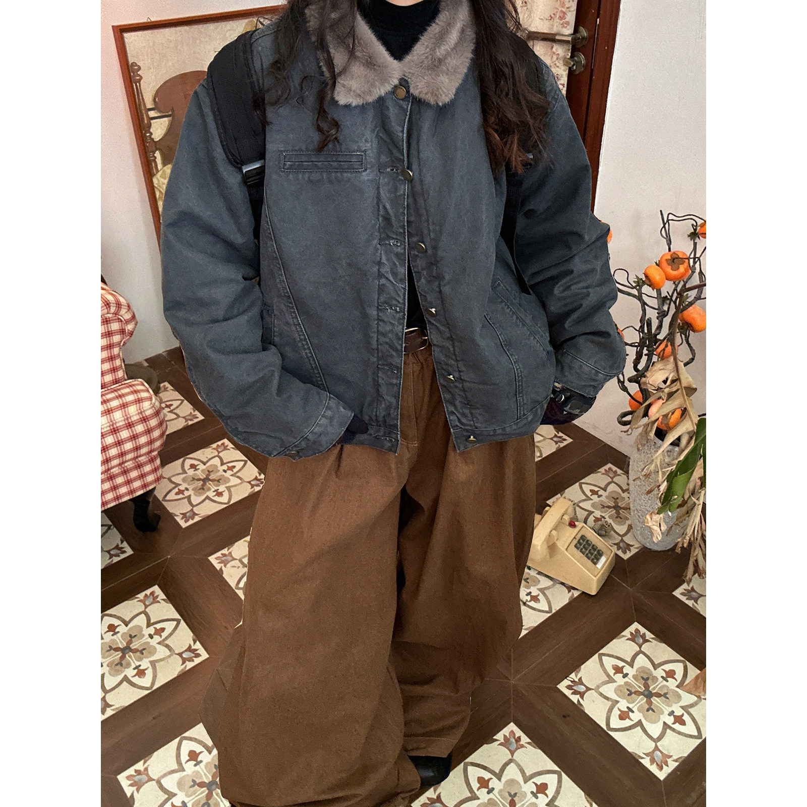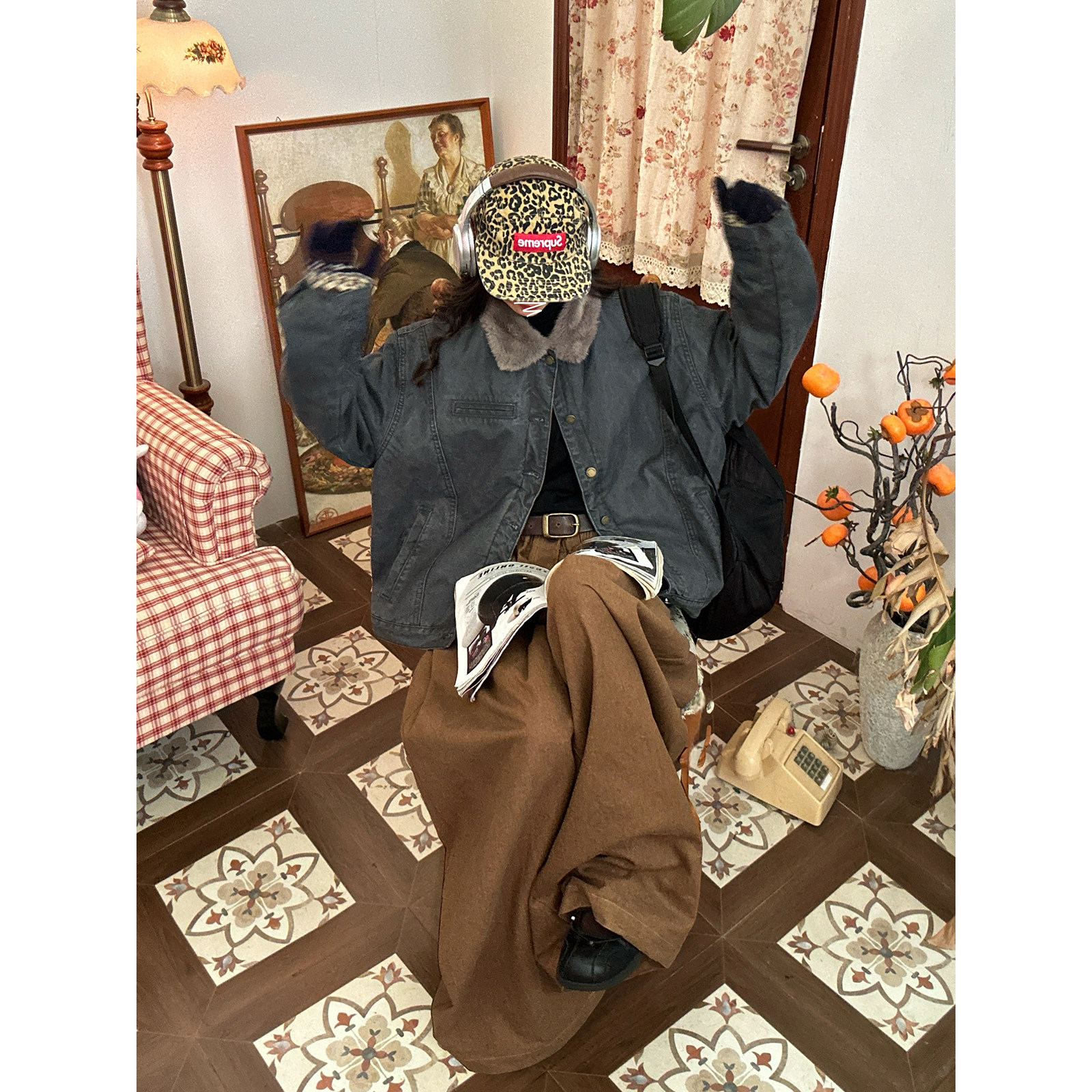 AFGK25FW美式 立领座山雕夹克棉服加绒加厚外套男女棉袄 仿貂毛冬季