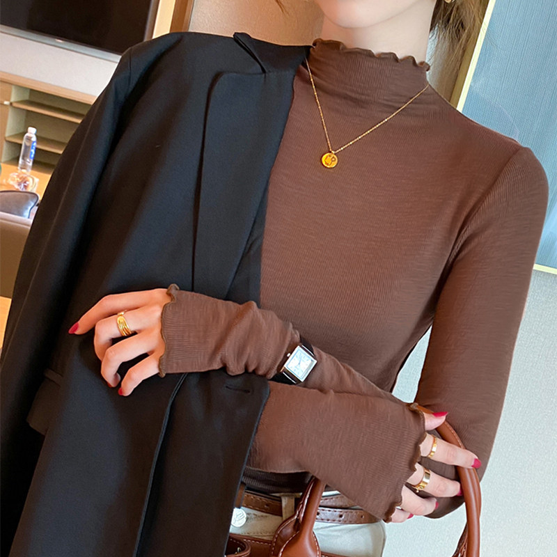 高端洋气灰色木耳边磨毛上衣 爆款 半高领打底衫 女内搭秋冬2025新款