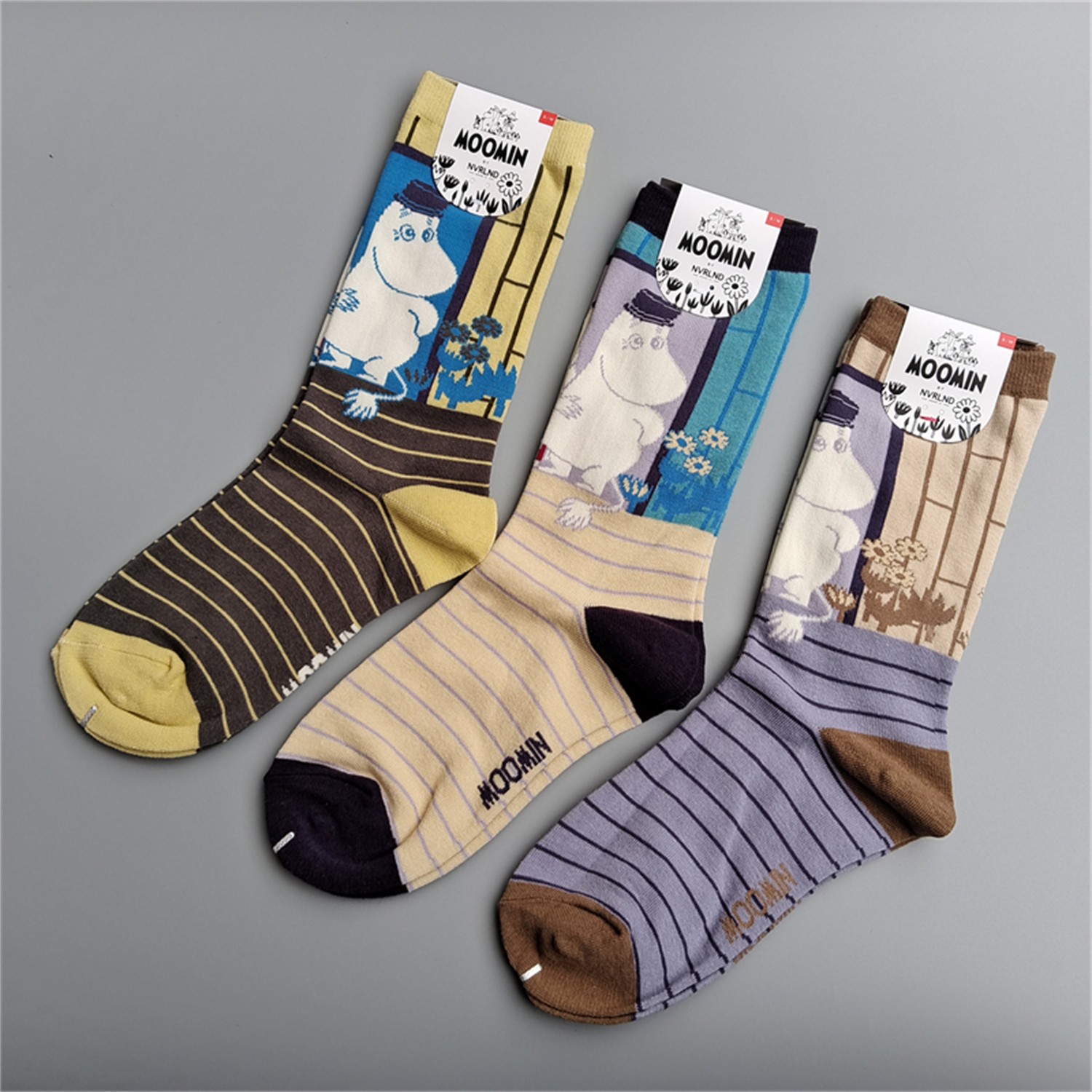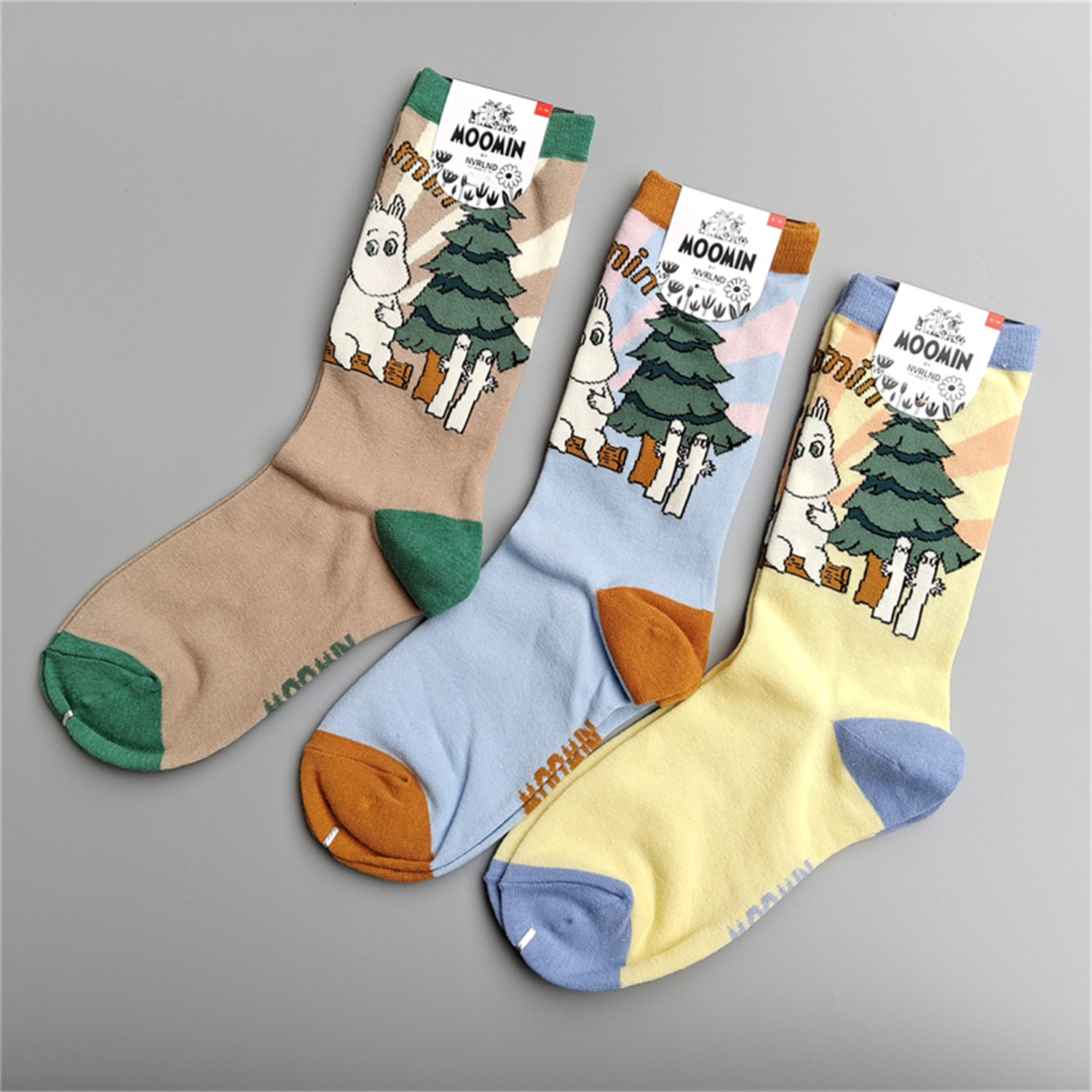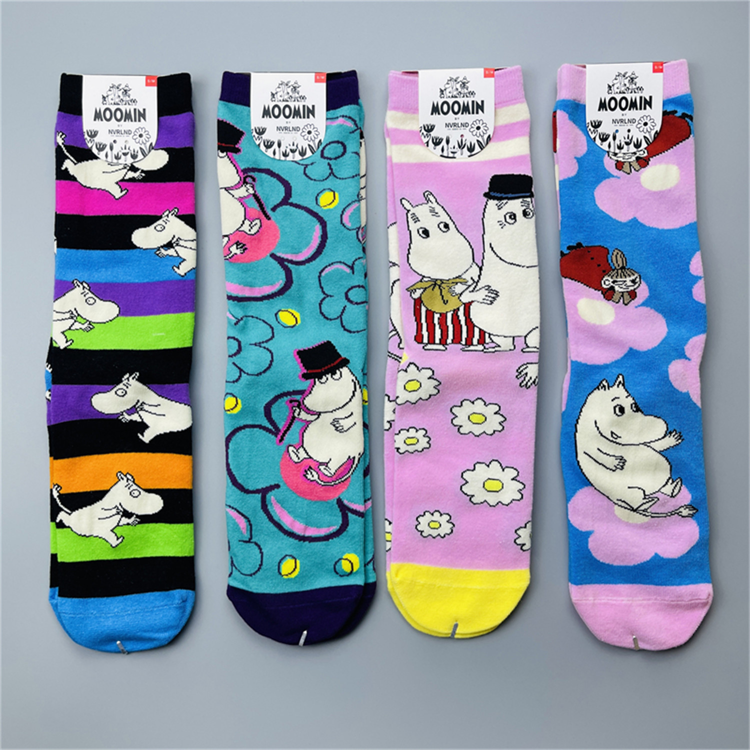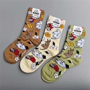 小腿袜棉袜卡通袜子 款 新品 亚美姆明多巴胺彩色潮袜女士中高筒四季