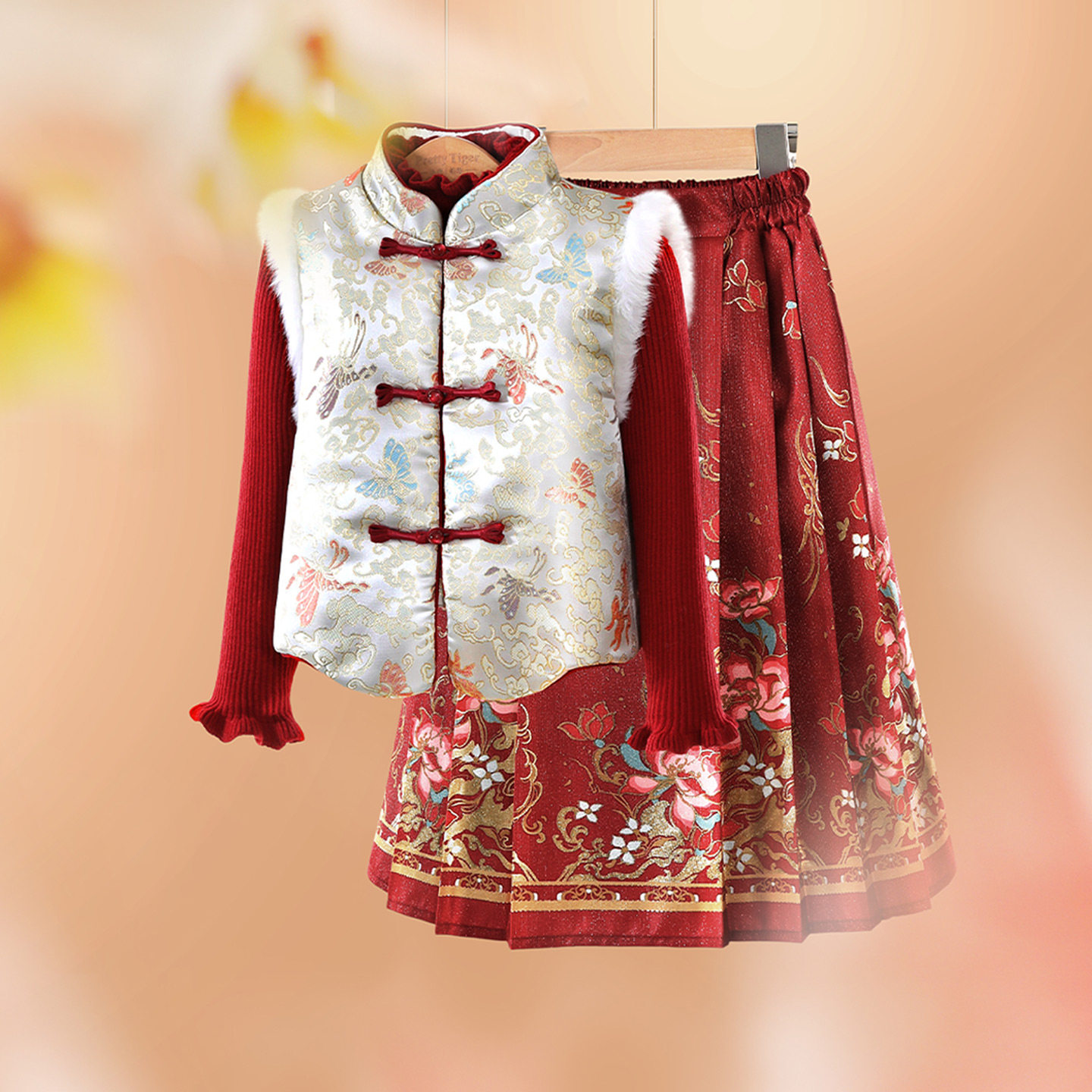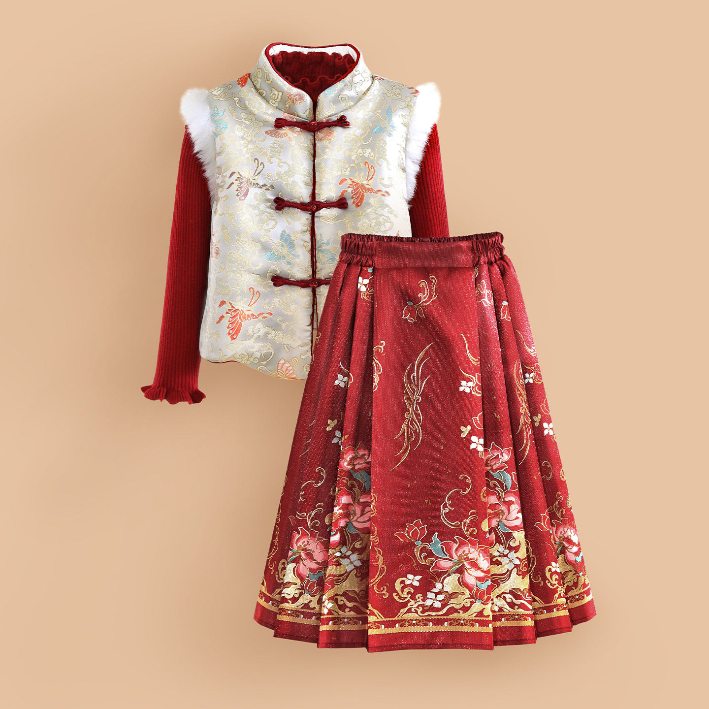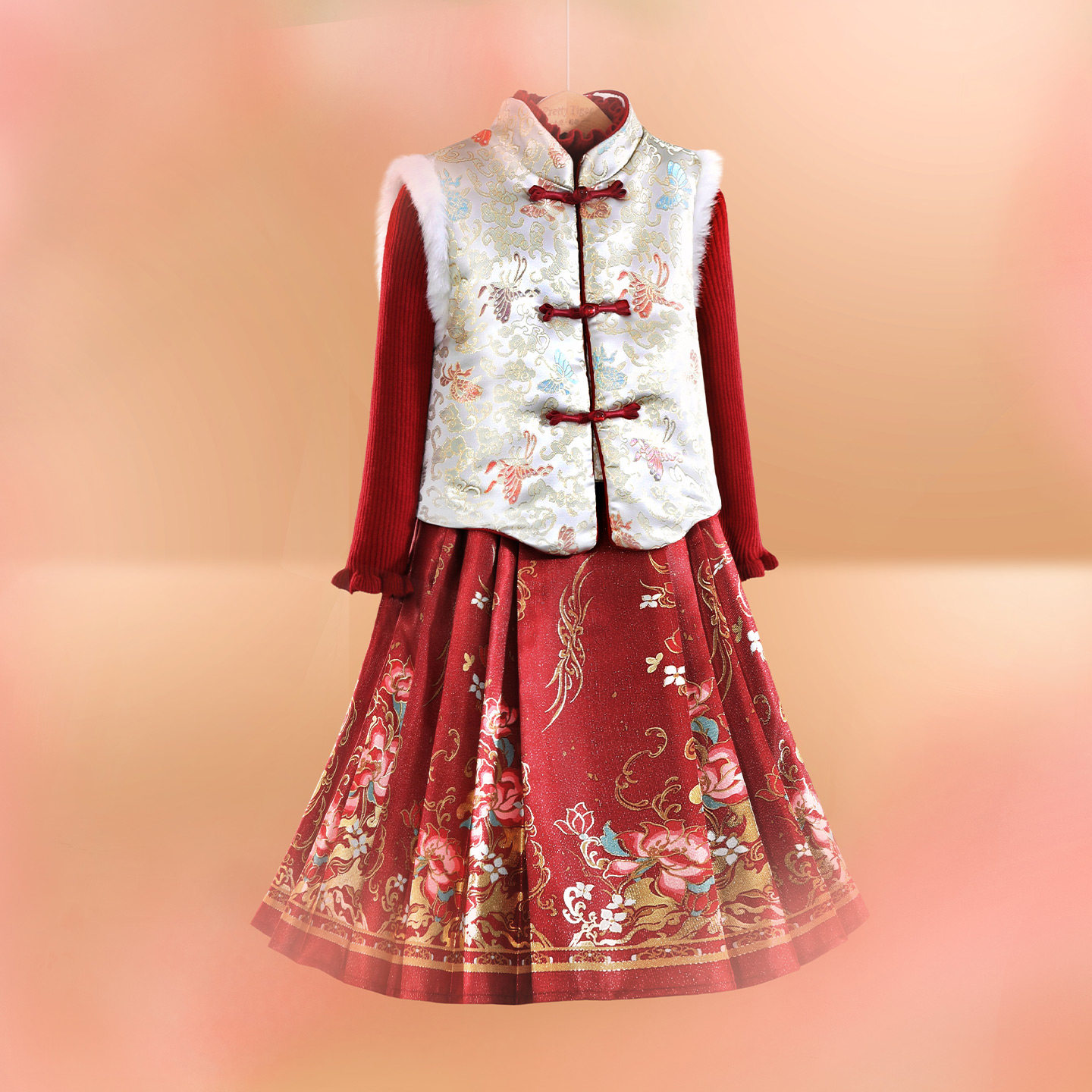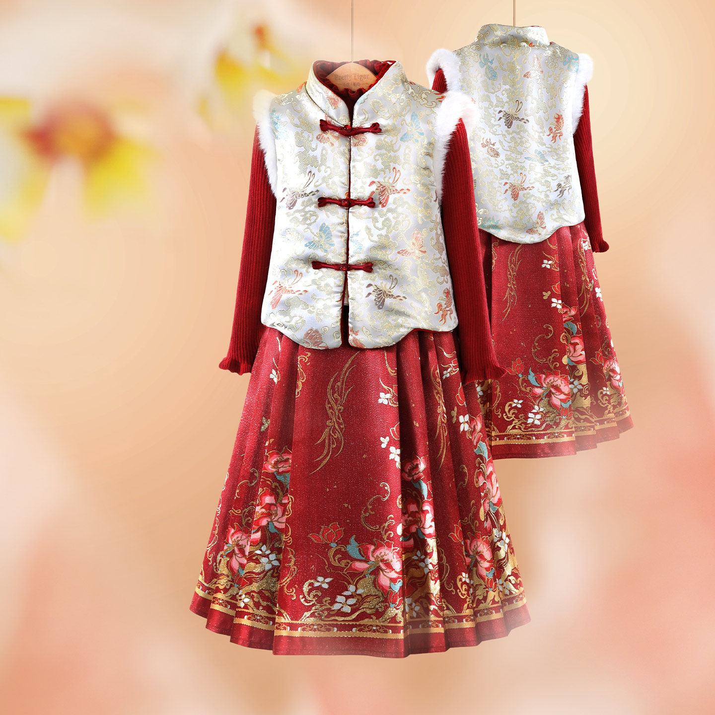 直领短袄日常马面裙套装 明制汉服加绒对穿交冬款 花束玫瑰 茗月萱
