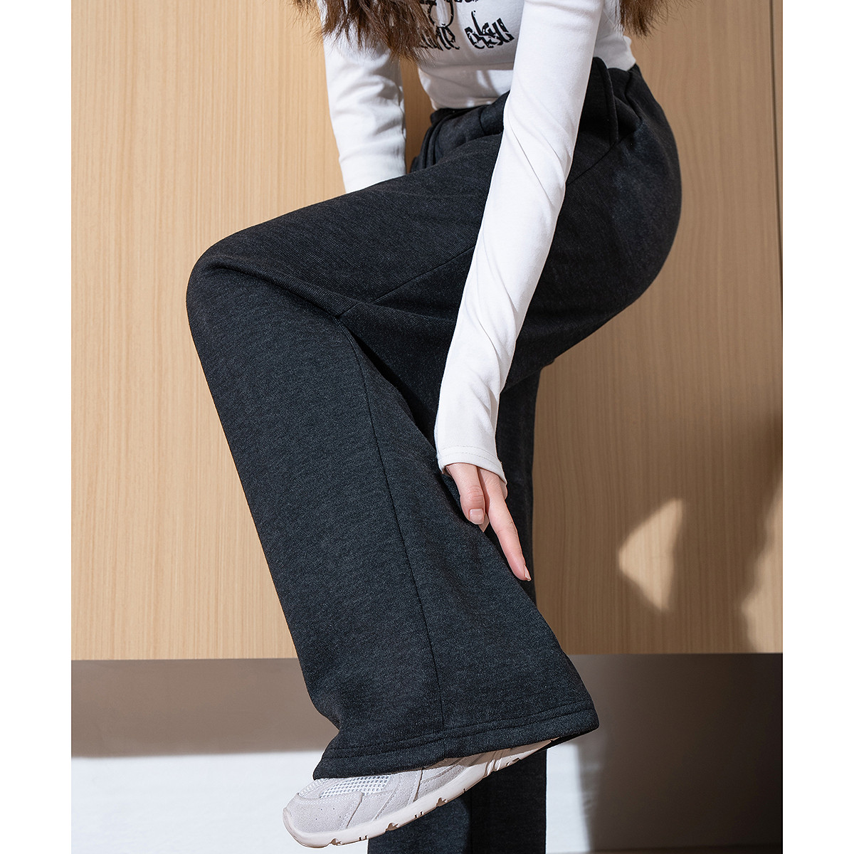 灰色糯米裤 唐狮春秋季 女加绒加厚垂感阔腿百搭长裤 休闲裤 WPTD 新款