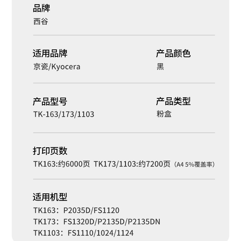 政企专用 tk1103墨粉1120d 适用京瓷p2035d硒鼓p2135dn粉盒FS tk173墨盒tk163dk173 1320 1110打印机1124
