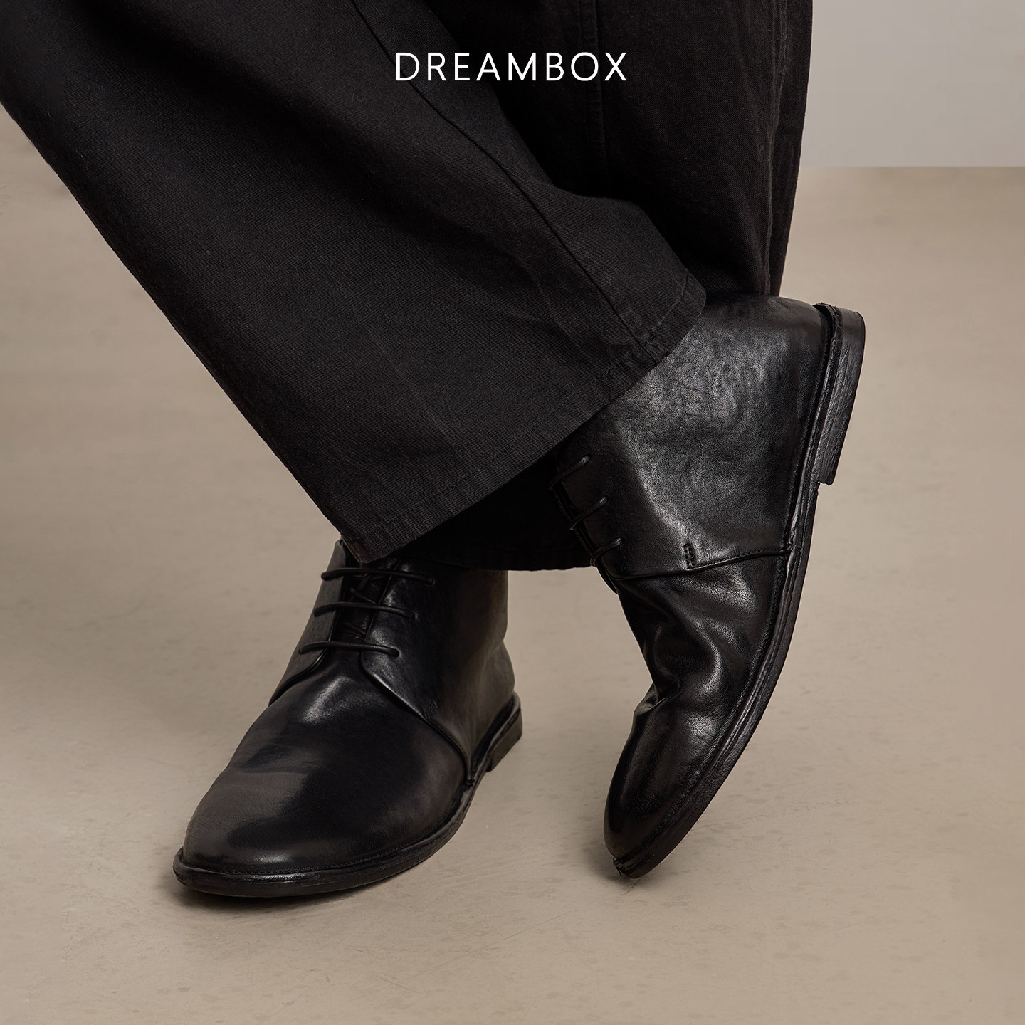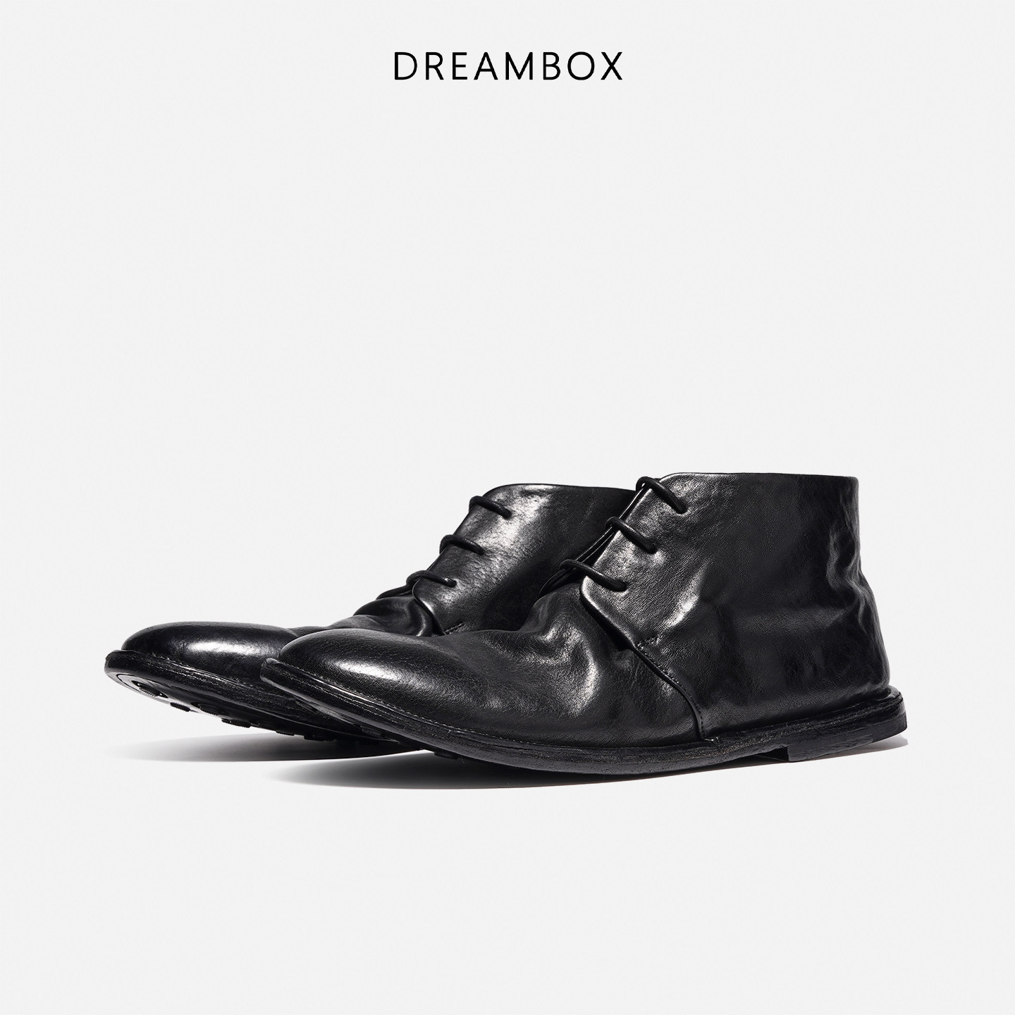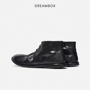 皮鞋 dreambox钧博石洗马皮短靴2025新款 中帮马丁靴英伦复古工装