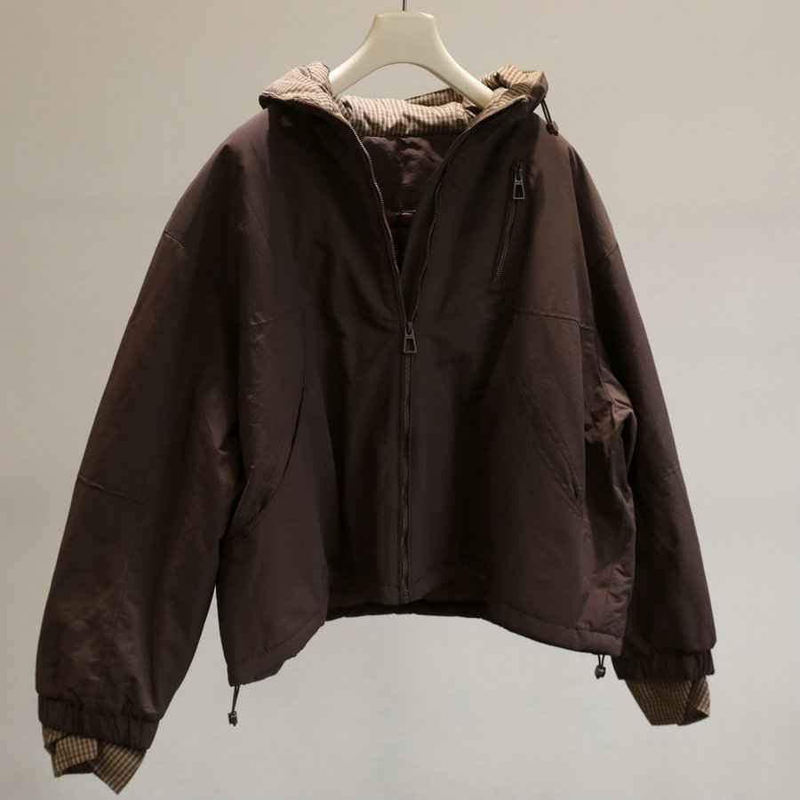 细致绗棉 格子拼接加厚连帽夹克外套女宽松廓形显瘦夹棉上衣秋冬