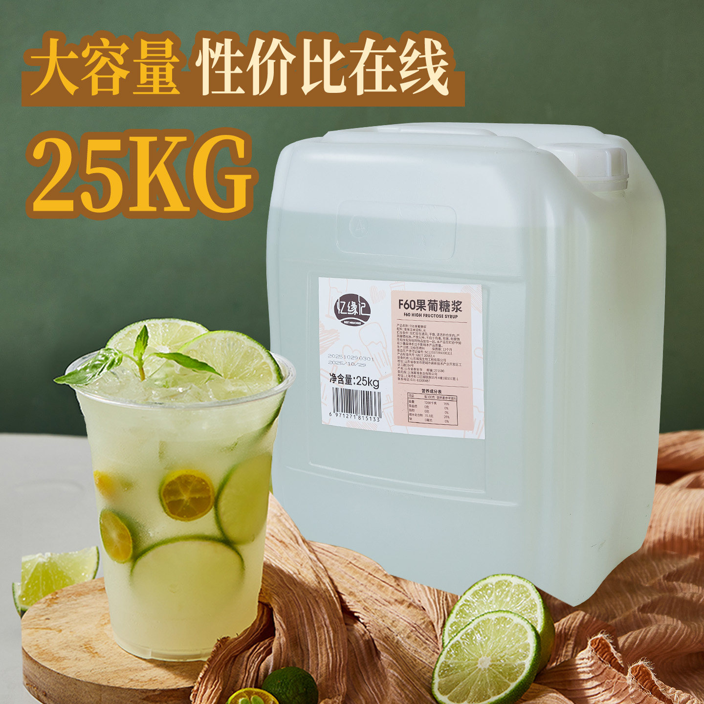 商用奶茶咖啡店调味原料果葡糖浆 F60液体糖浆 2.5kg大桶装 果糖