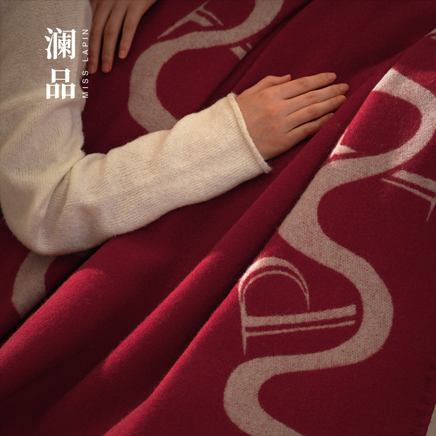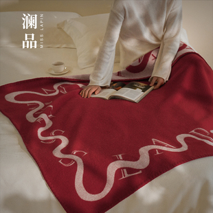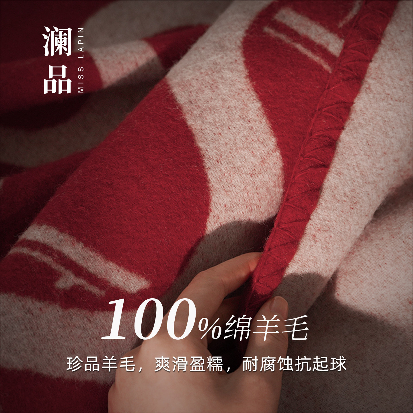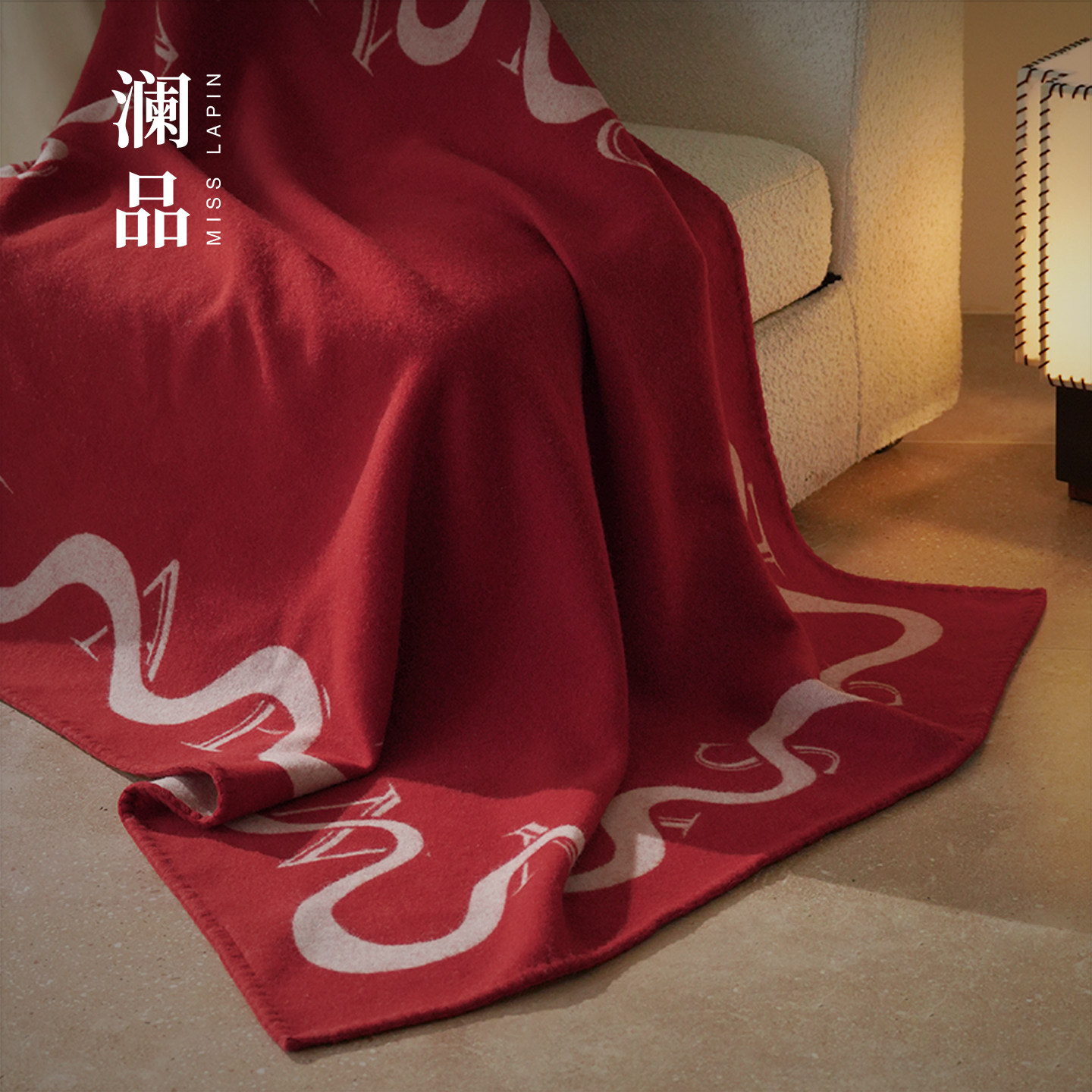 澜品 100%纯羊毛毯高级感沙发毯红色新年披毯婚庆高端盖毯 律动