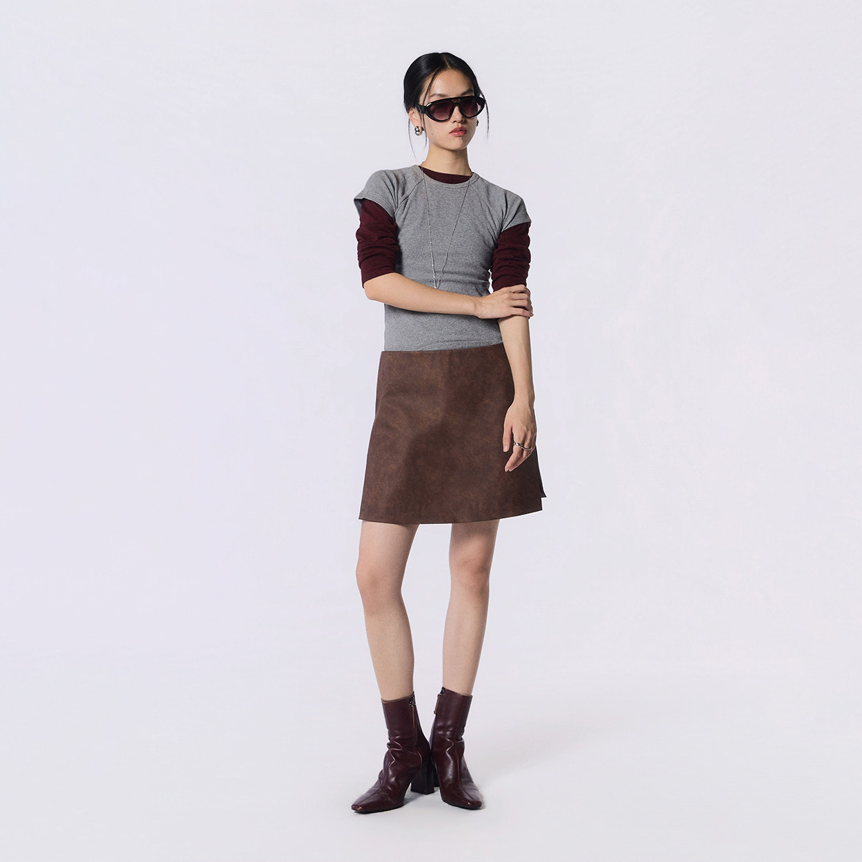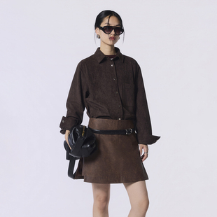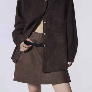 裙百搭裙裤 休闲裤 复古棕色假两件皮质短裙女秋冬新款 OTHERSTORE