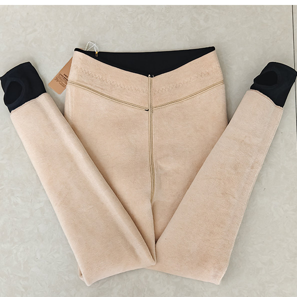 踩脚收腹保暖棉裤 秋冬外穿加绒连袜加厚羊绒秋裤 女薄款 高腰打底裤