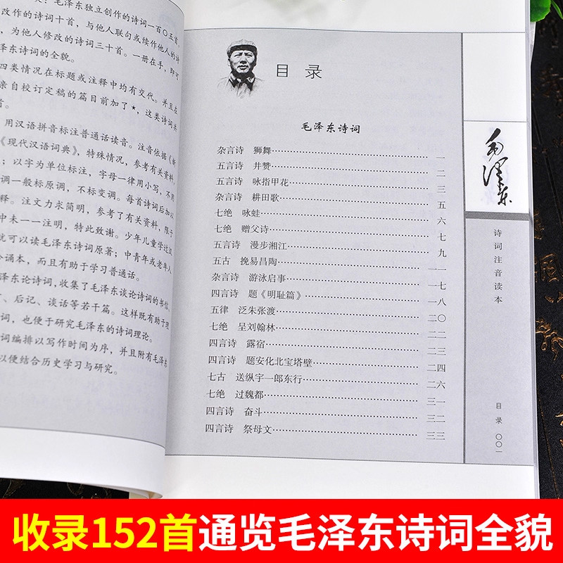 上下册全集毛主席语录朗诵选读本沁园春雪现代诗歌伟人诗集精选带释义中小学生红色经典 毛泽东诗词珍藏版 课外阅读 152首注音版