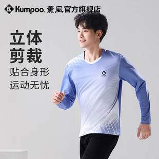 薰风2025新款 圆领T恤跑步健身服熏风休闲上衣 羽毛球服男运动长袖