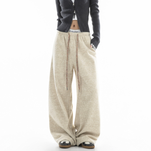 复古加绒裤 子休闲裤 女加厚卫裤 ICH 卫裤 美式 直筒阔腿运动裤 MODE
