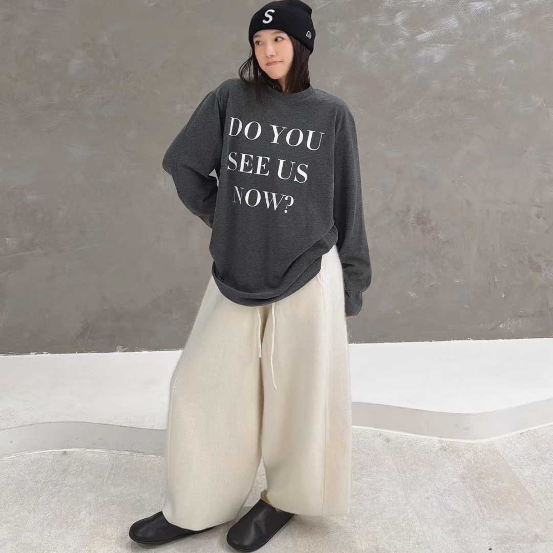 打底衫 欧货圆领慵懒松弛感字母印花大版 T恤潮 新款 欧洲站2025冬季