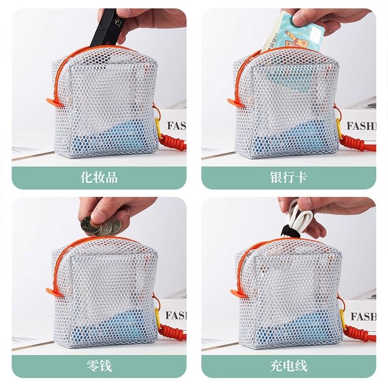 多巴胺豆腐包迷你网纱便携旅行洗漱化妆品收纳包补妆包网格杂物包