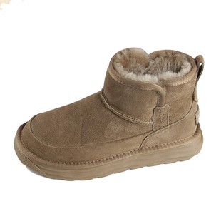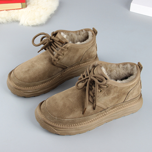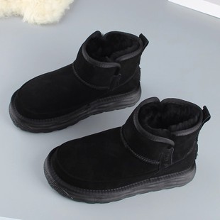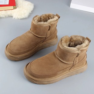 女士真皮雪地靴女2025冬新款 羊毛 皮毛一体加绒厚底保暖东北大棉鞋
