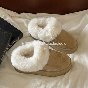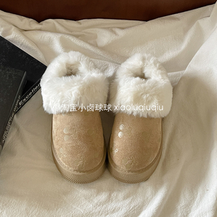 2025新款 冬加绒保暖厚底二棉鞋 一脚蹬 子女鞋 小卤球球短筒雪地靴鞋