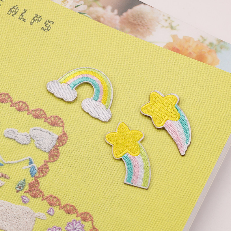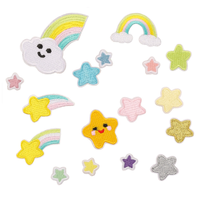 衣服补丁贴儿童刺绣自粘彩虹五角星布贴衣服羽绒装 饰修补破洞布贴