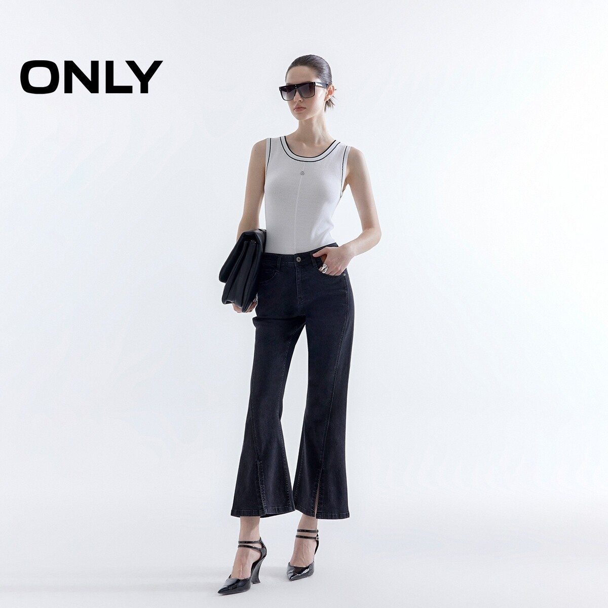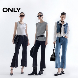 牛仔裤 拼接斜线剪裁高腰显瘦提臀九分喇叭裤 女 新款 ONLY2026春季