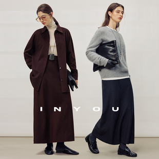 上衣套装 半身裙衬衫 女二件套 羊毛空气感A字宽松悬垂中长款 因由