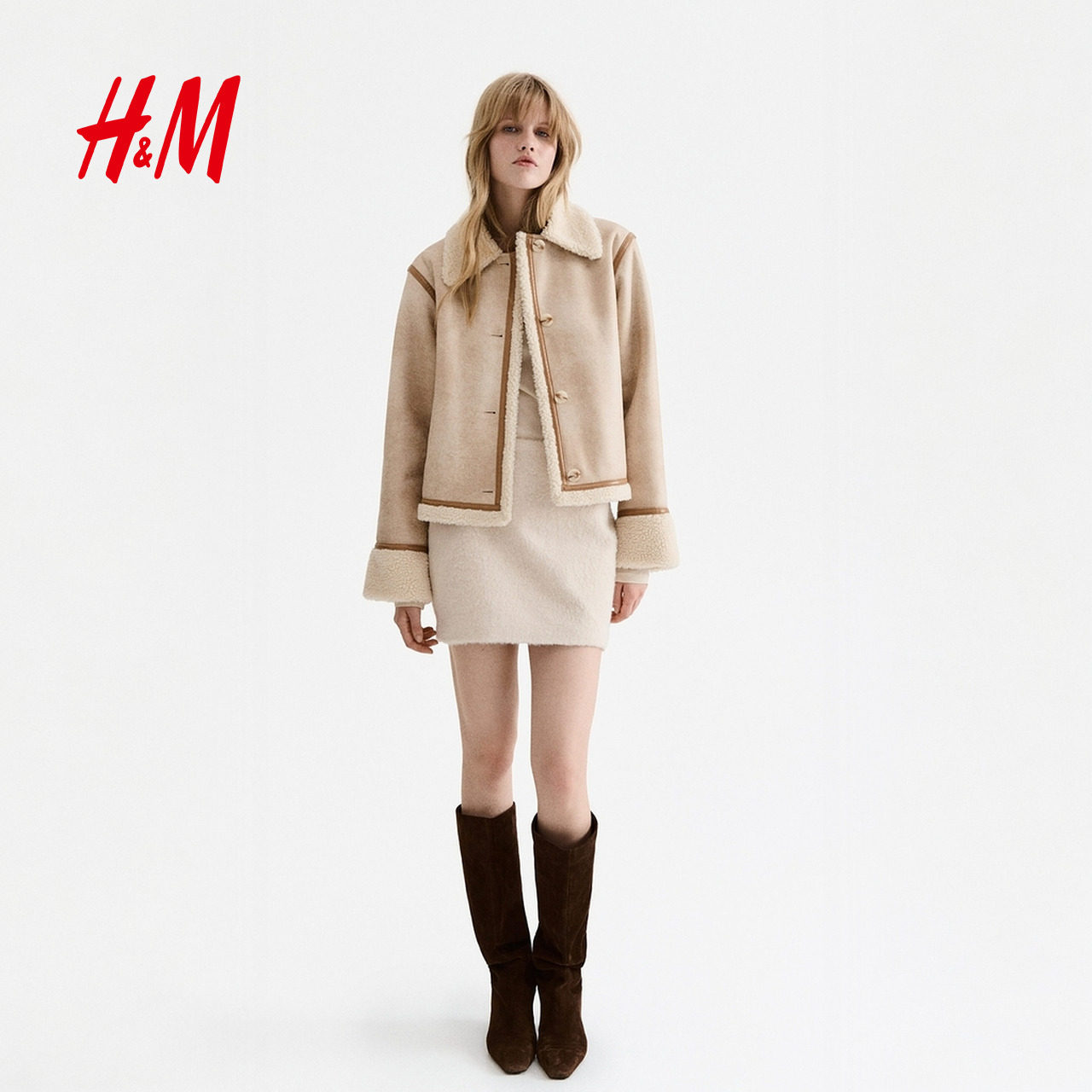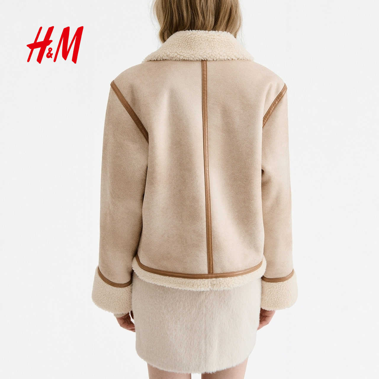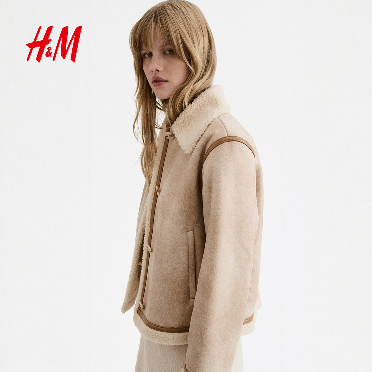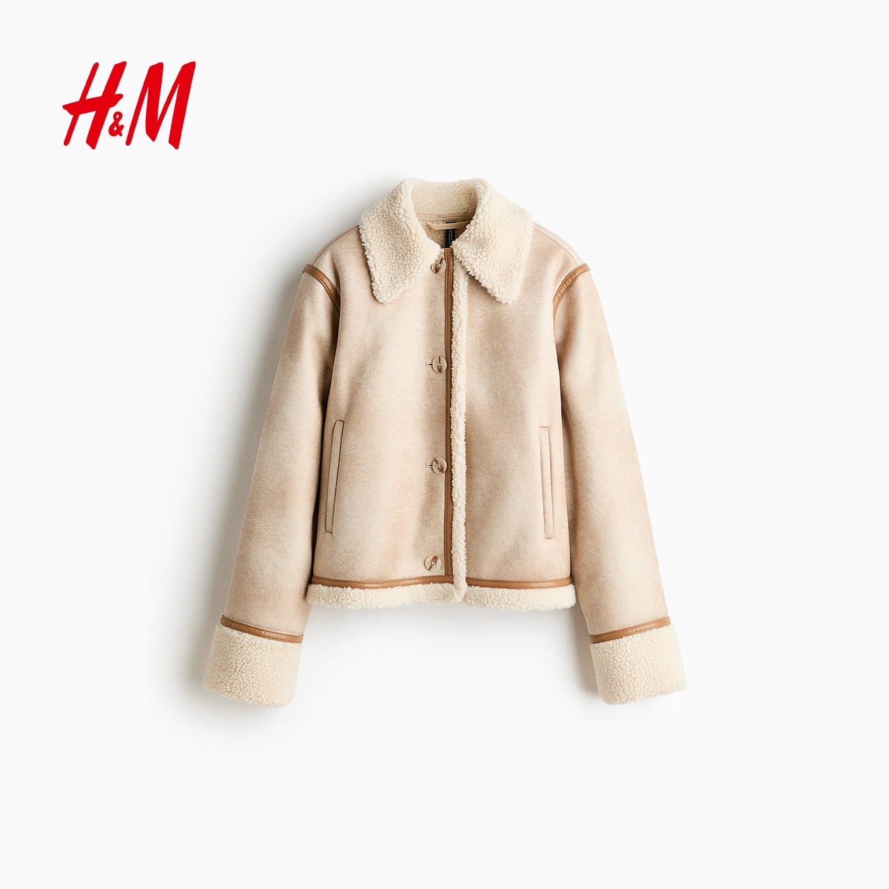 夹克加厚保暖上衣1304168 冬冬泰迪绒短款 HM女装 短外套女2025新款