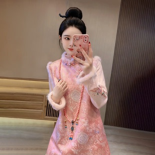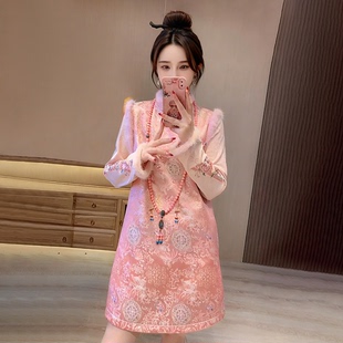 套装 加厚小衫 女装 冬高级感马甲裙新中式 连衣裙胖mm 2025款 国风大码