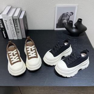 女百搭松糕鞋 小个子7cm轻便厚底皮面休闲英伦风时尚 新款 2025秋季