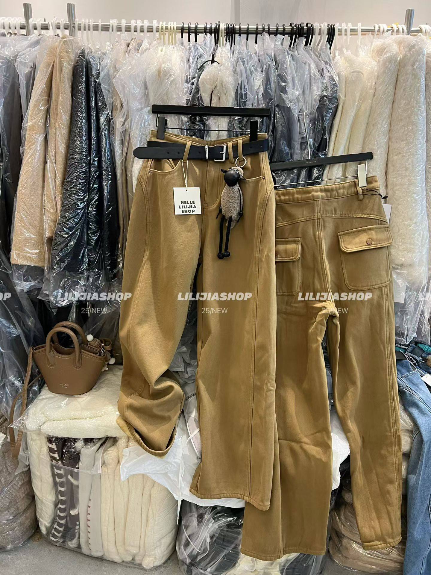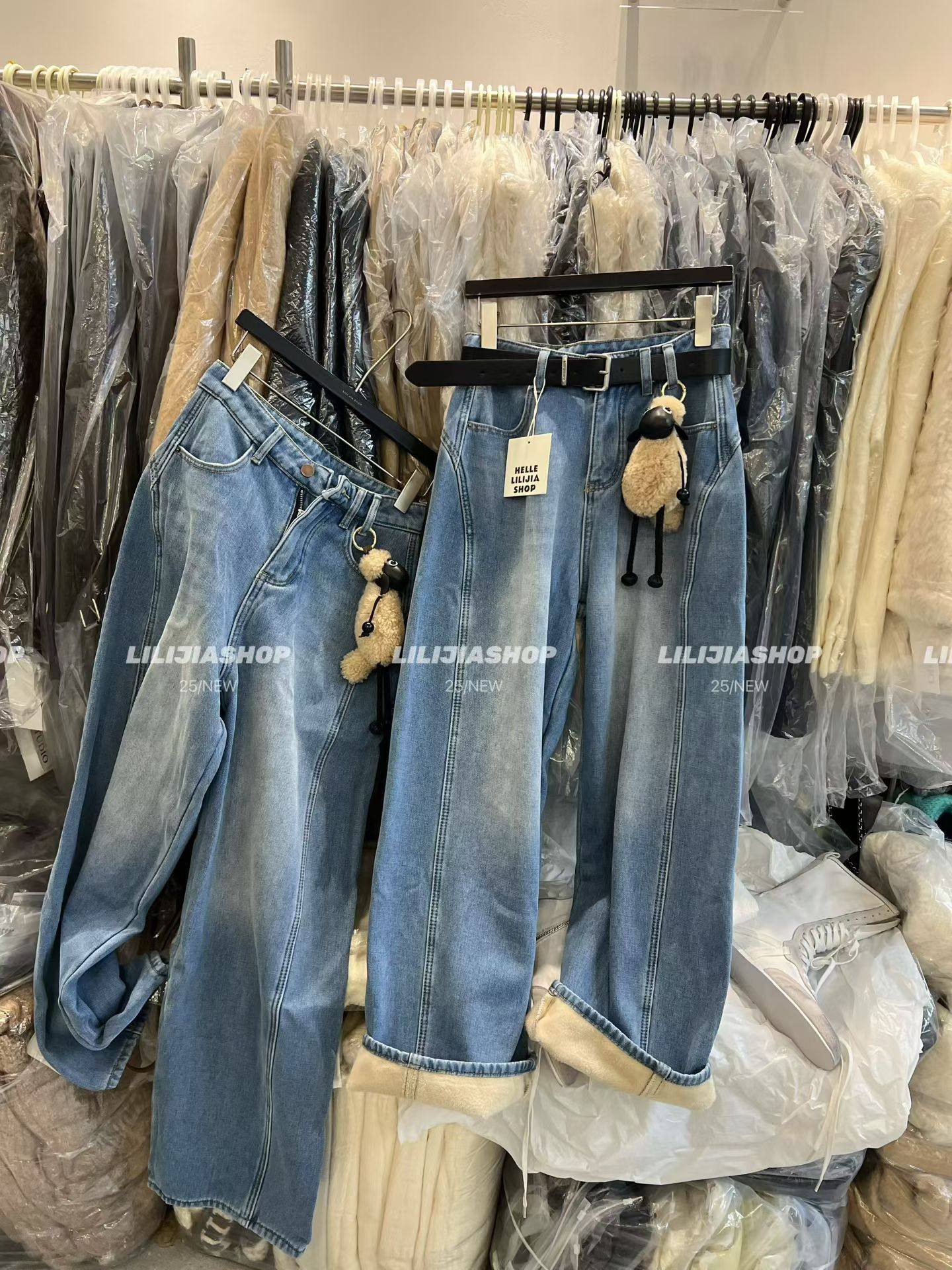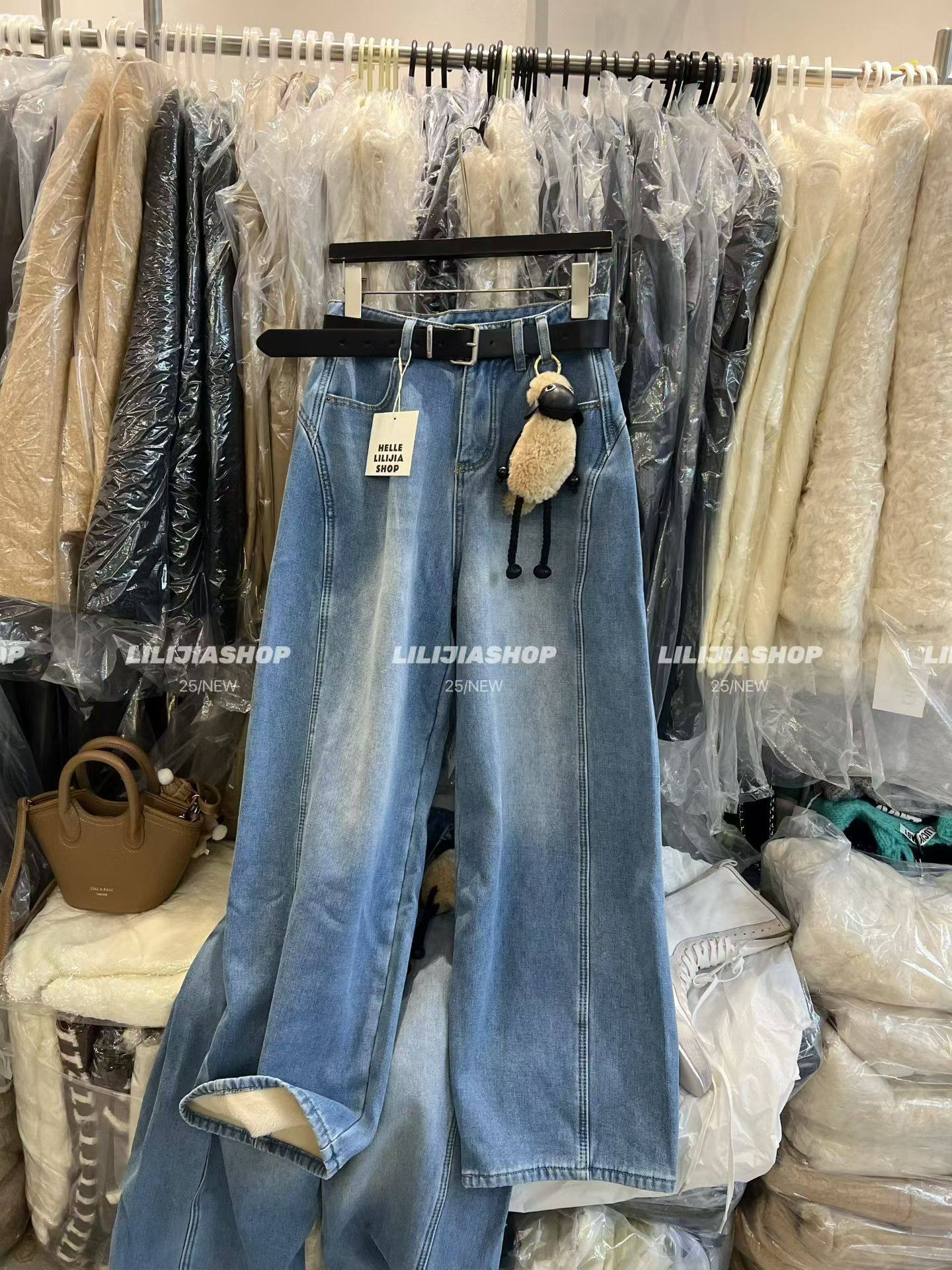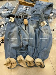 百搭宽松显瘦高腰加绒阔腿牛仔裤 时尚 2025冬韩版 女配挂件 五折
