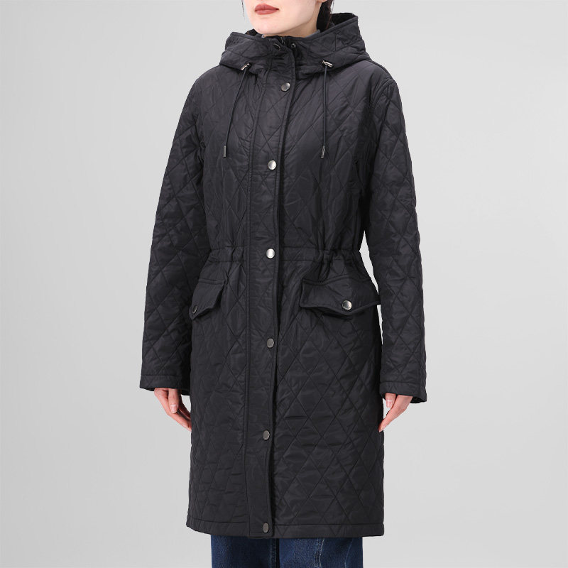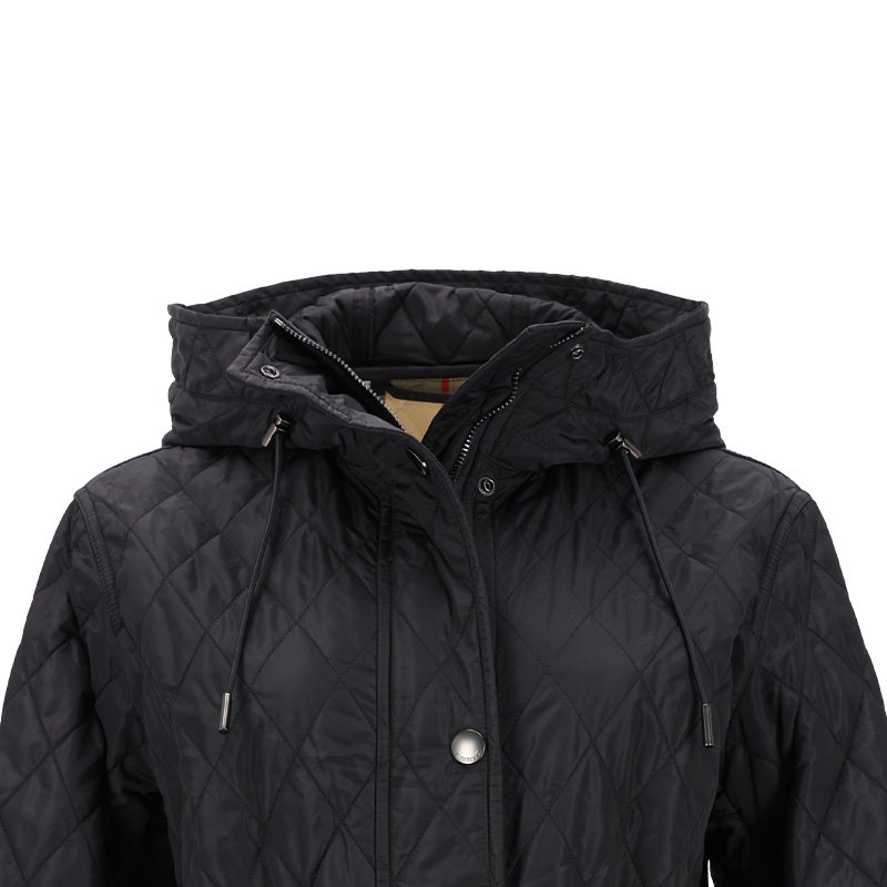复古菱形格夹棉外套200斤 女装 胖mm冬季 巴恩翻领棉服木子理想大码