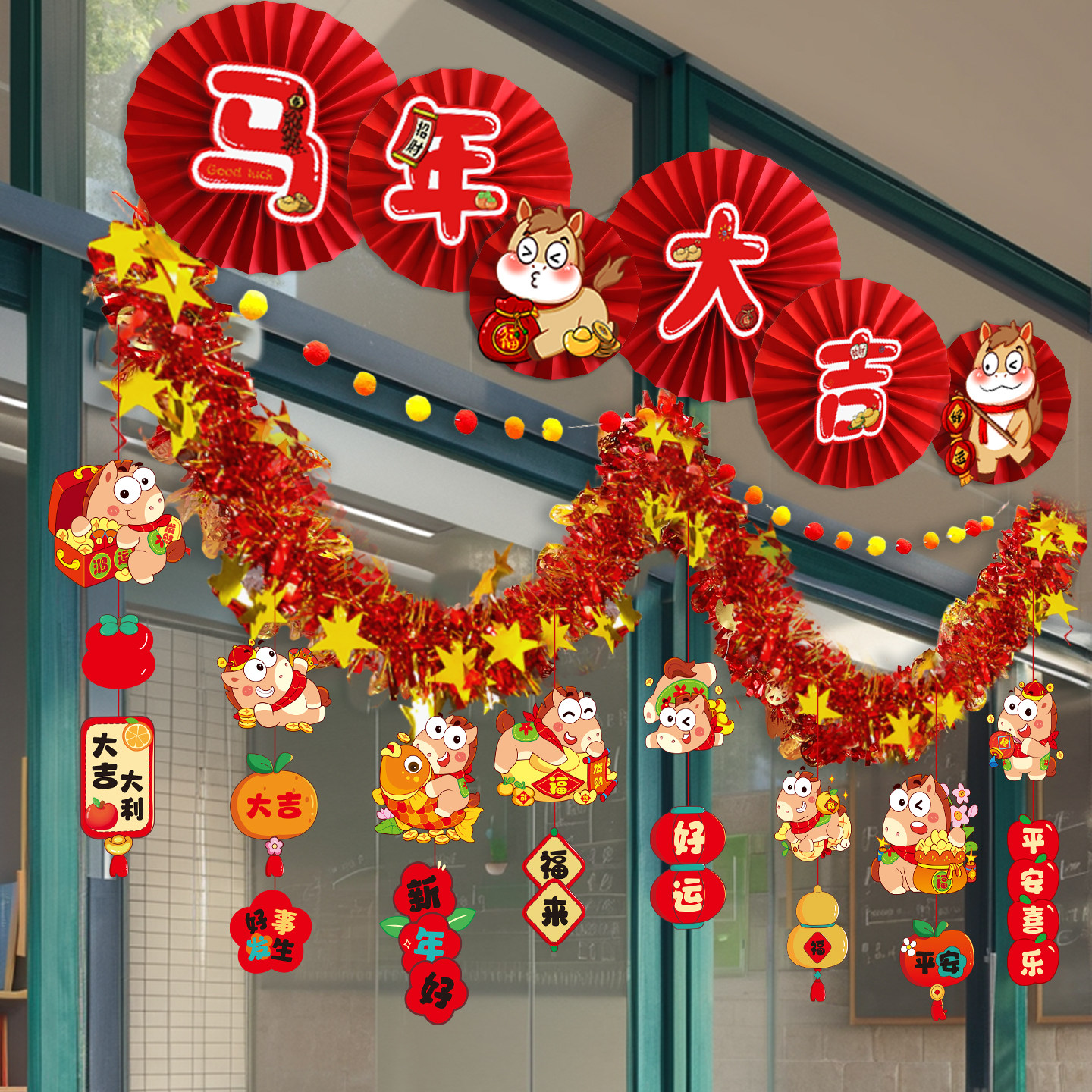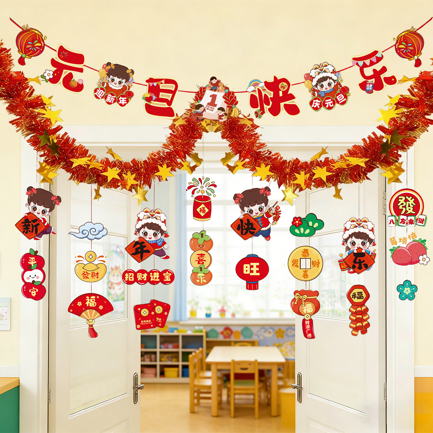 2026新年环创幼儿园元 饰品材料学校场景拉花吊饰 旦班级布置教室装