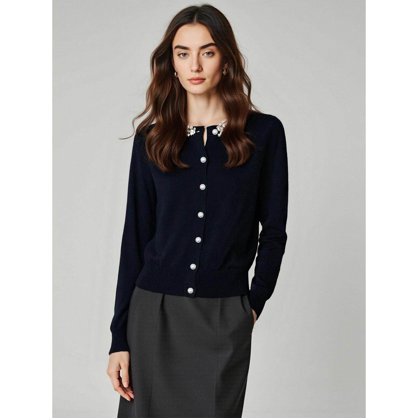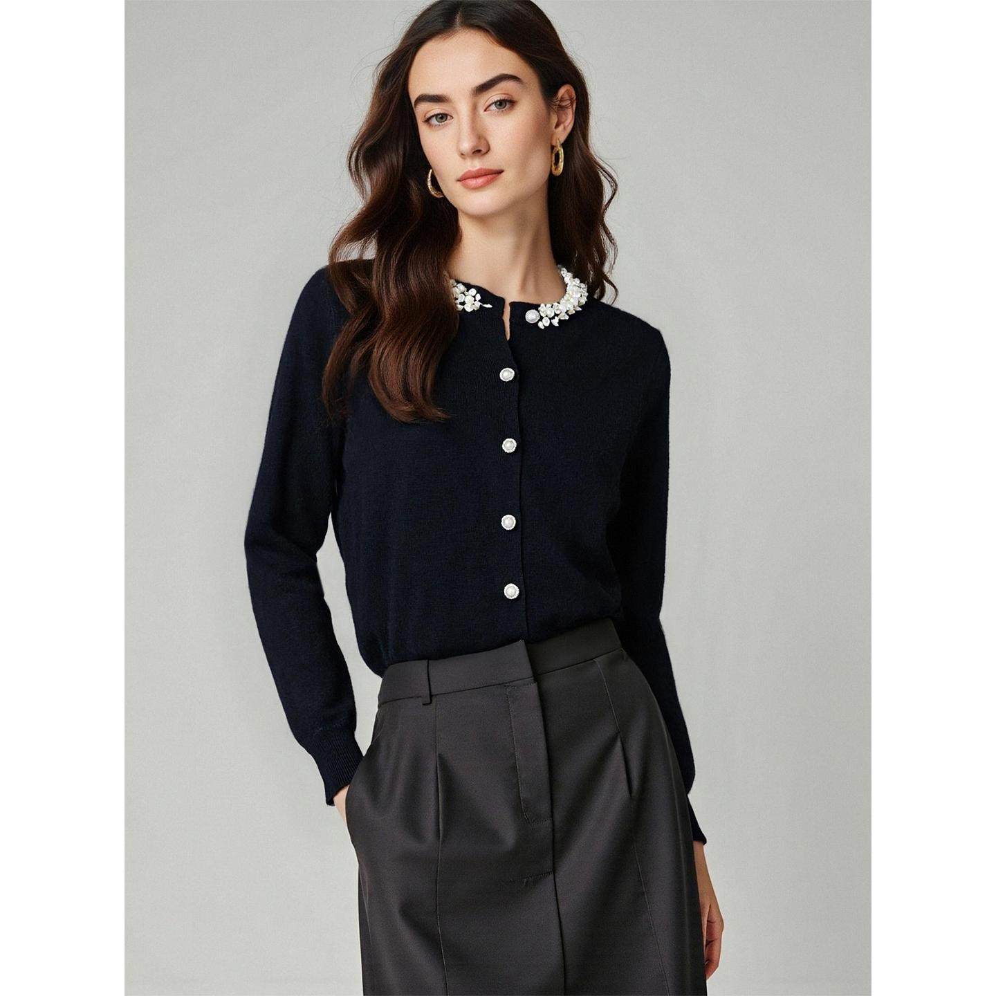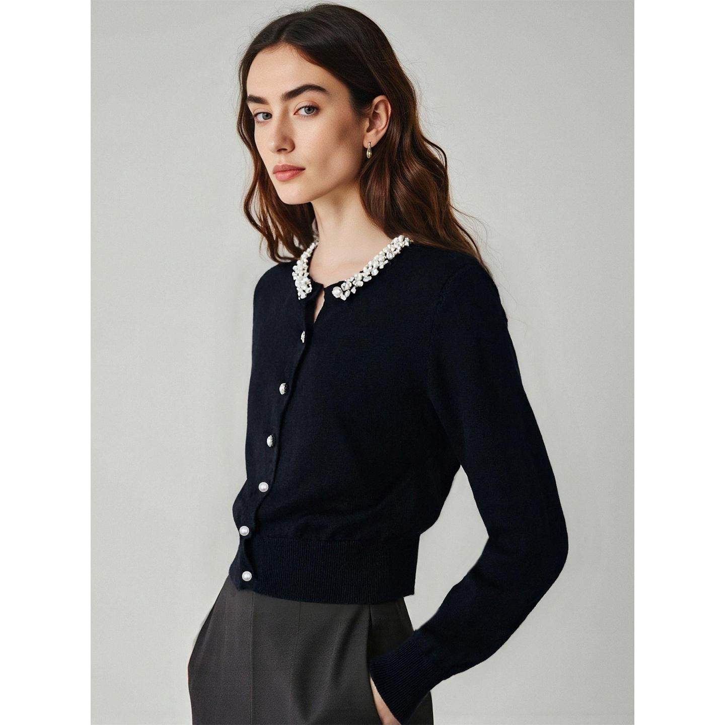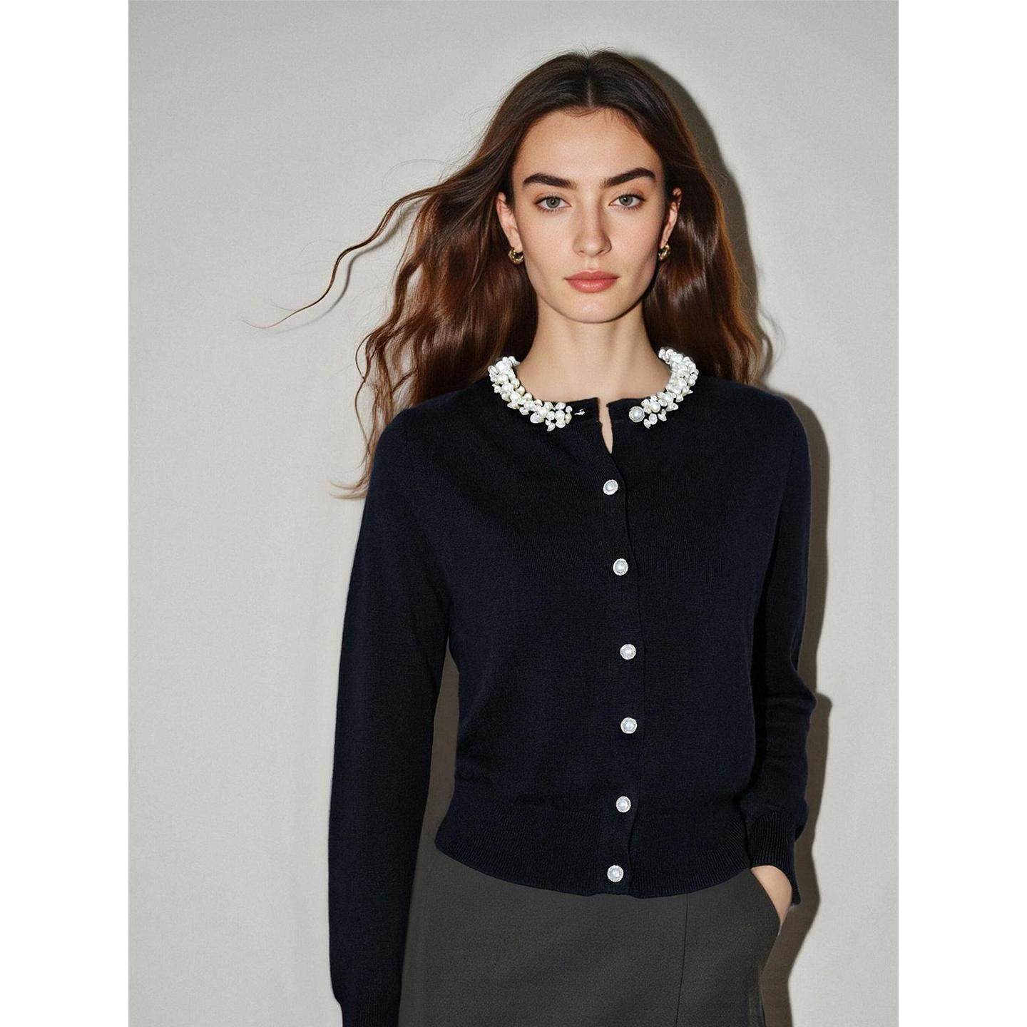 女秋冬可叠穿上衣 百家好黑色小香风重工钉珠针织开衫 Basic House