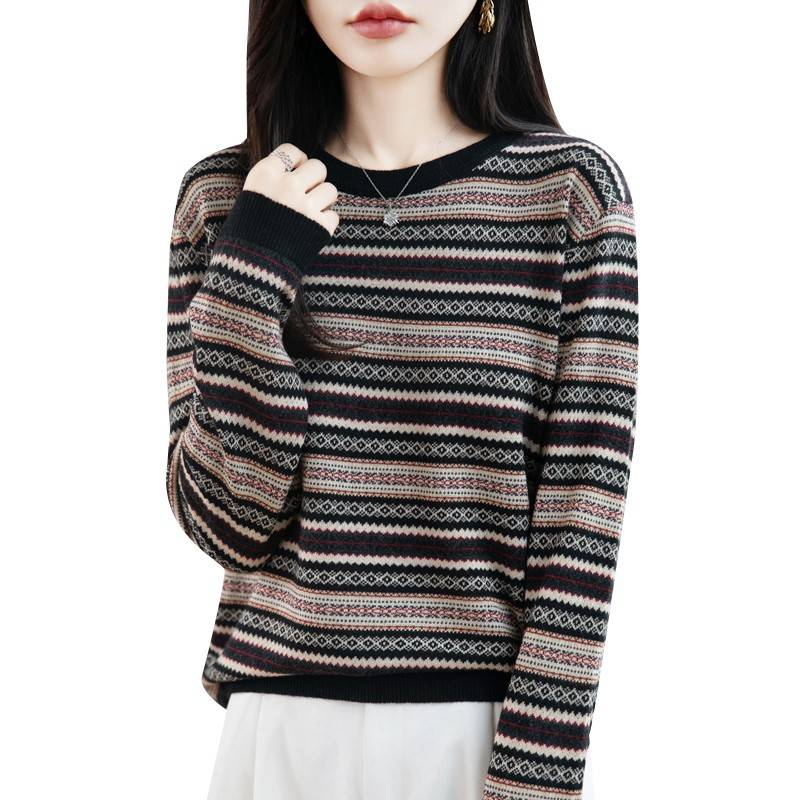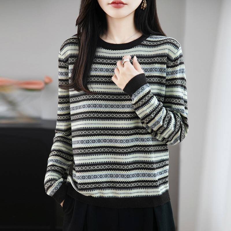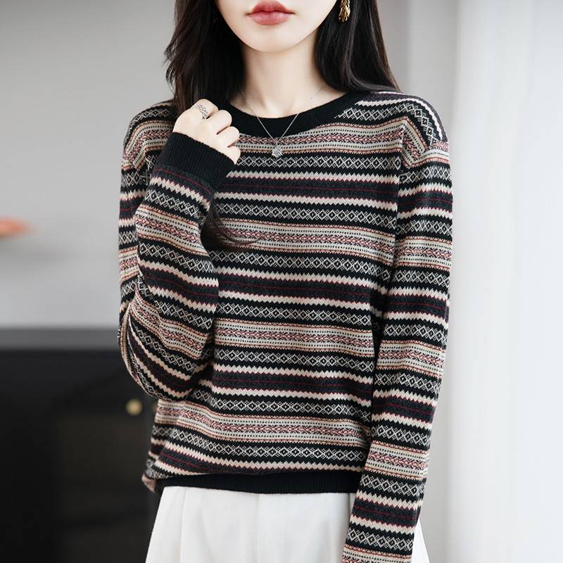 女低圆领宽松显瘦毛衣百搭100羊毛针织打底衫 2025秋冬新款 羊绒衫