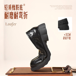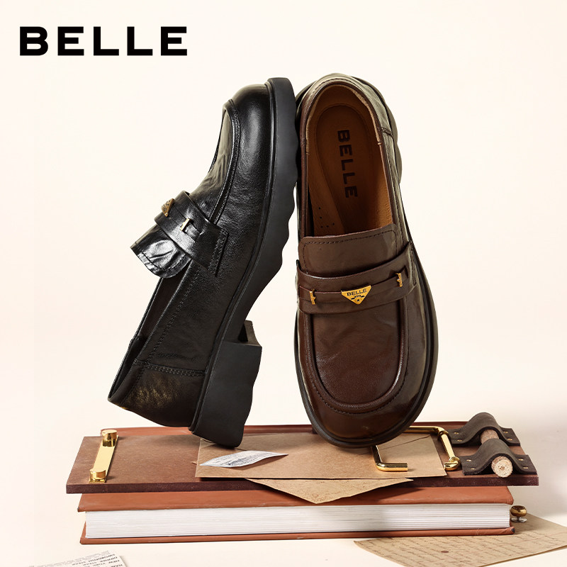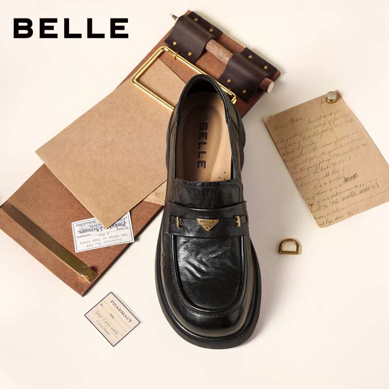 深口单鞋 百丽复古羊皮乐福鞋 黑色小皮鞋 新款 E9L1DAA6预 女2026春季