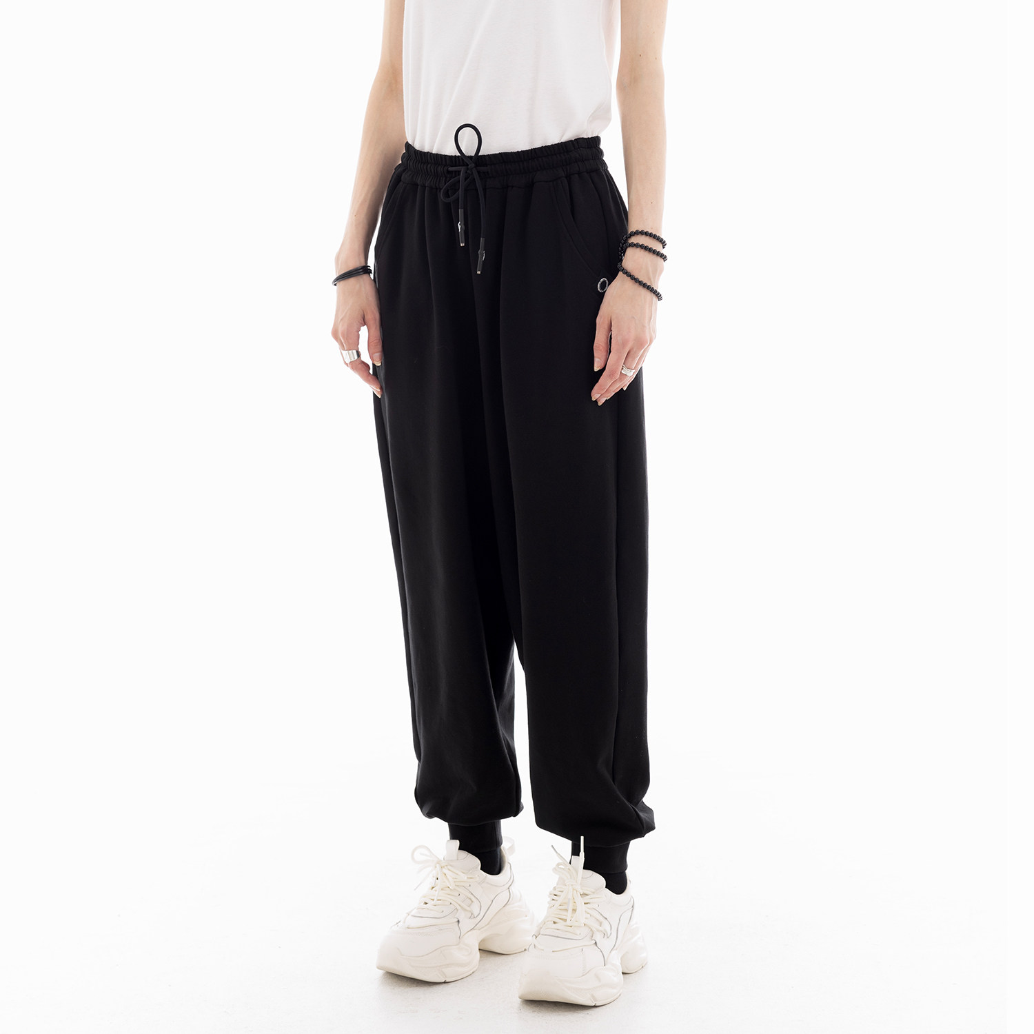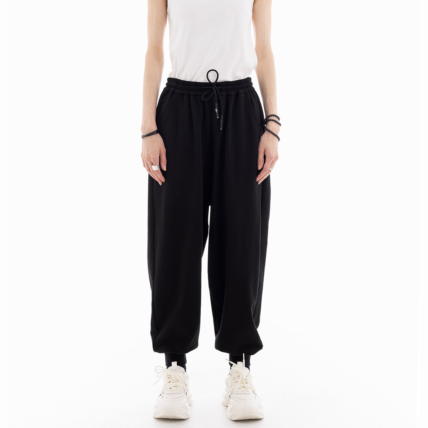 Veryrareme洗水低腰螺纹腰头抽绳卫裤 窄版