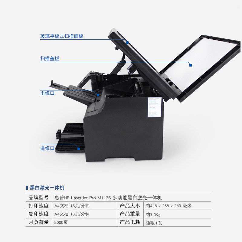惠普M126a激光打印机126nw复印扫描一体机多功能办公专用学习商务