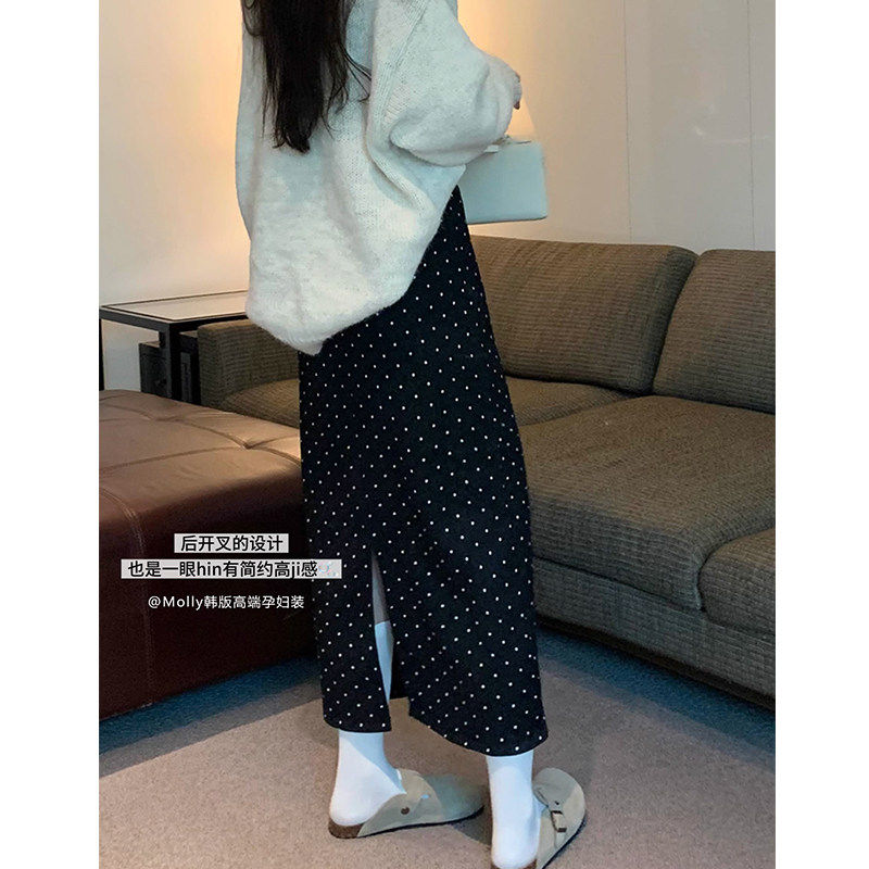裙子 女胖mm显瘦a字开叉长款 复古直筒黑色灯芯绒半身裙秋冬款 大码