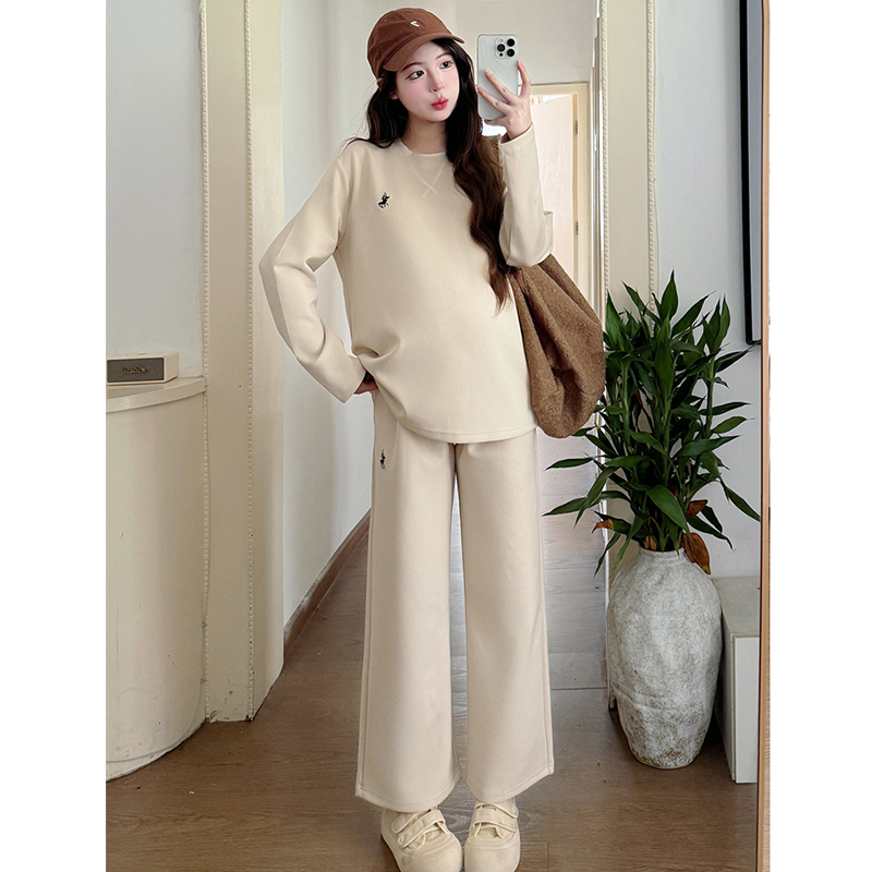 春秋冬2025新款 子套装 时尚 不显怀卫衣裤 洋气潮妈韩版 孕妇蓝色套装