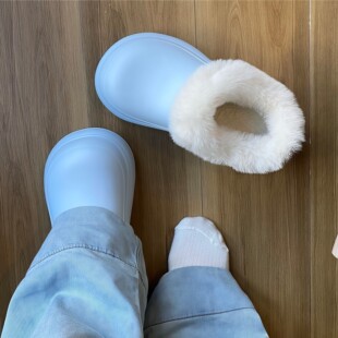 外穿防水防滑包头拖鞋 一脚蹬包跟增高棉鞋 冬季 毛毛绒雪地靴厨师鞋
