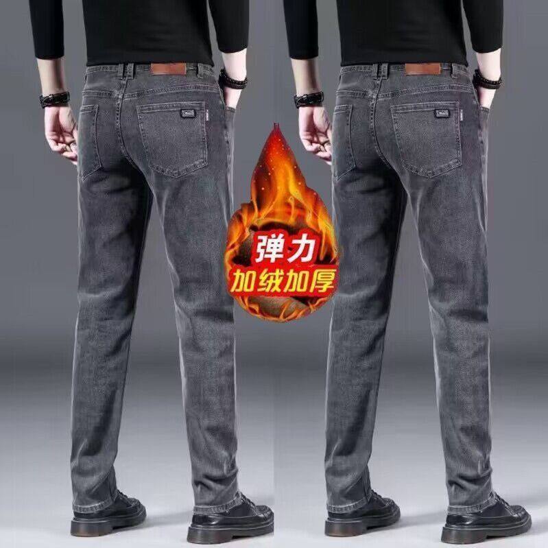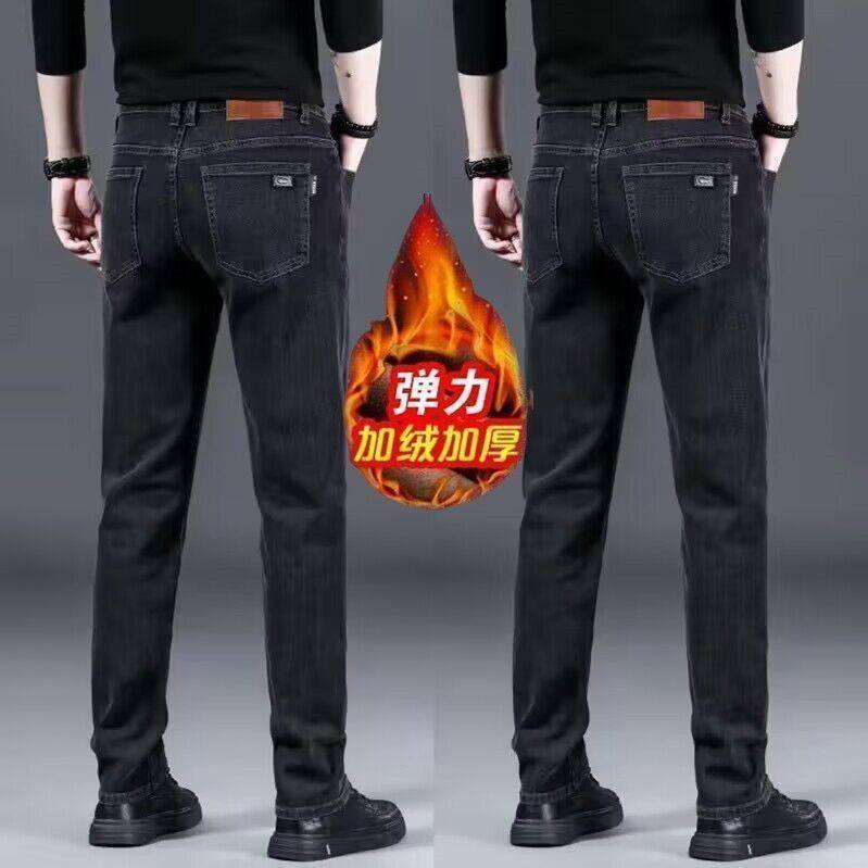 男冬季 休闲百搭男裤 新款 小脚长裤 保暖修身 黑灰水洗加绒加厚牛仔裤