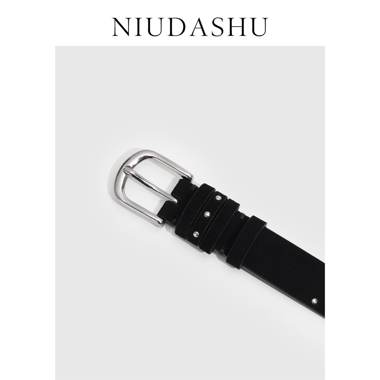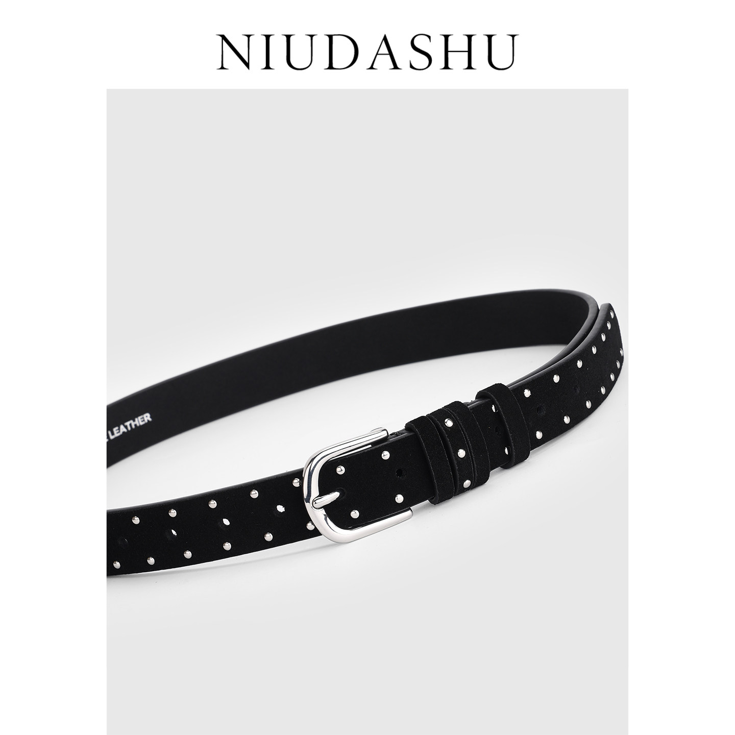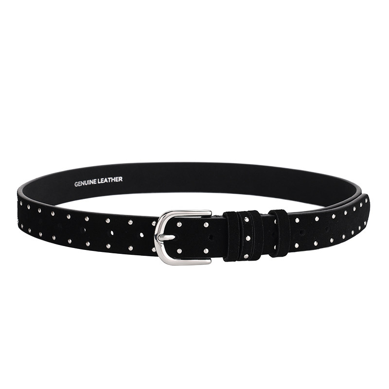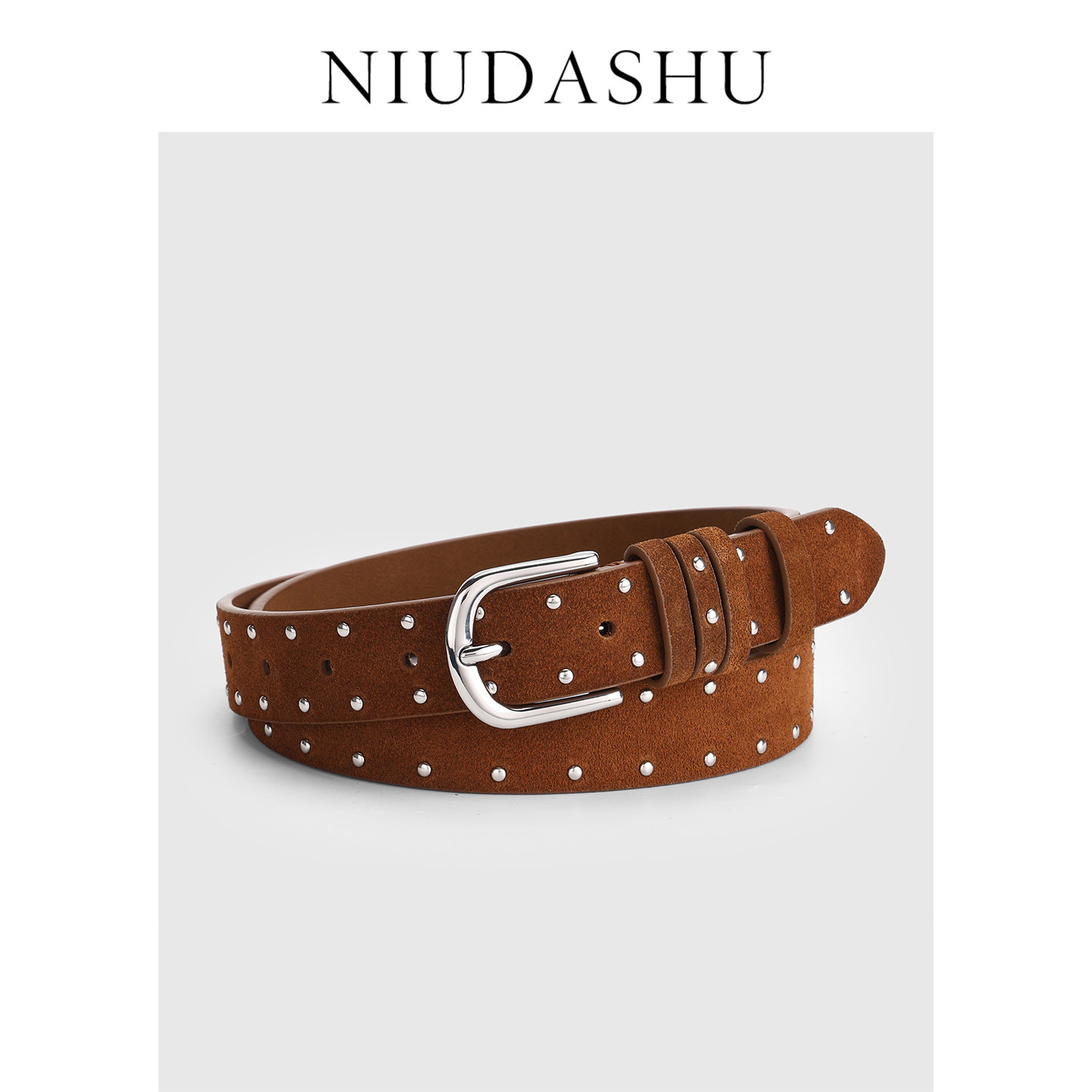 饰潮流个性 宽休闲铆钉装 朋克腰带女棕色 辣妹时尚 皮带女真皮牛仔裤