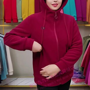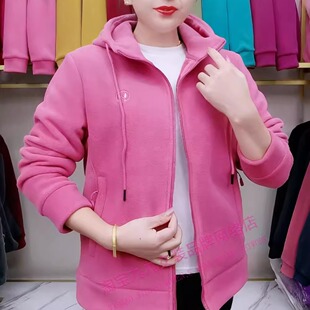 保暖夹克 宽松时尚 加绒加厚摇粒绒外套女秋冬新款 休闲连帽拉链开衫