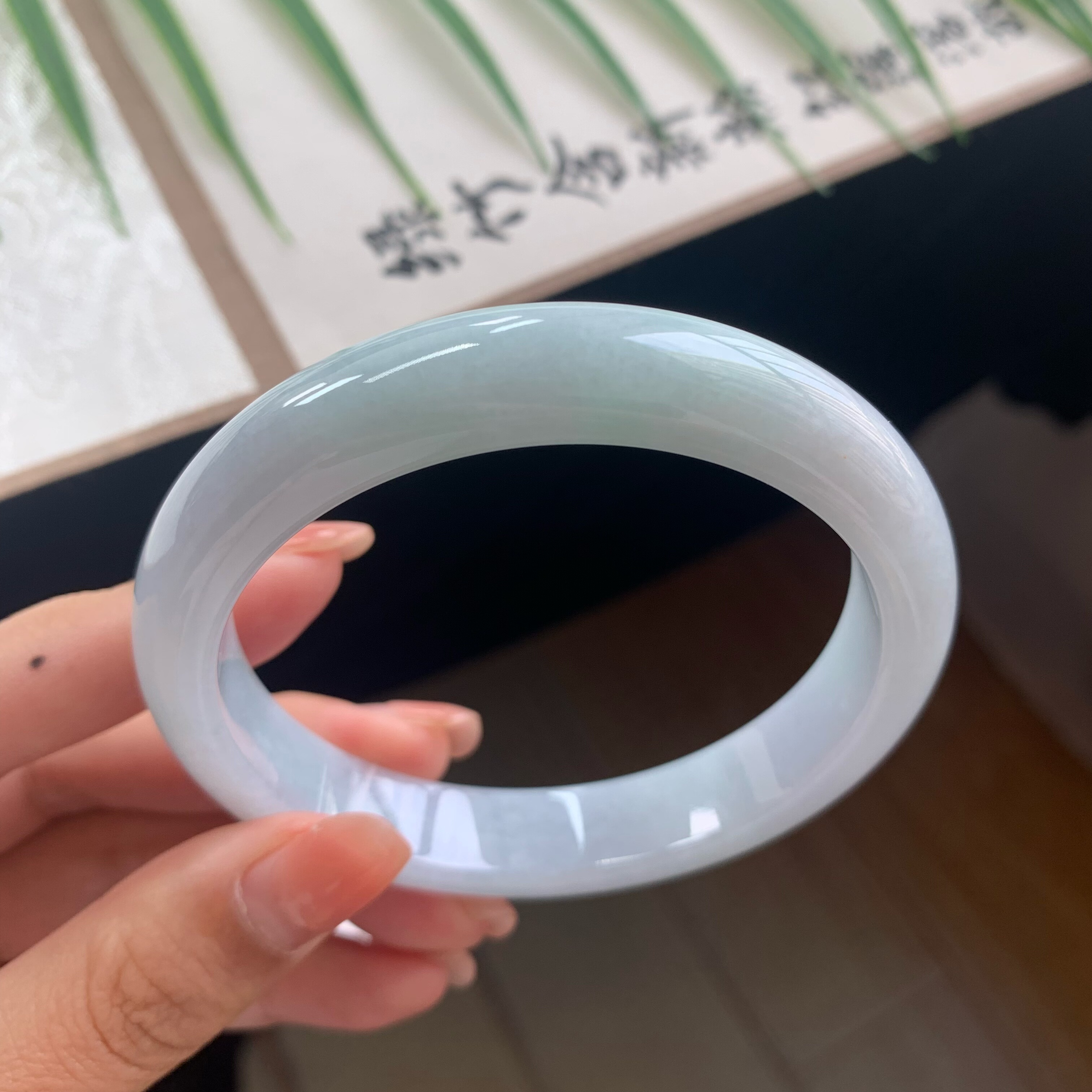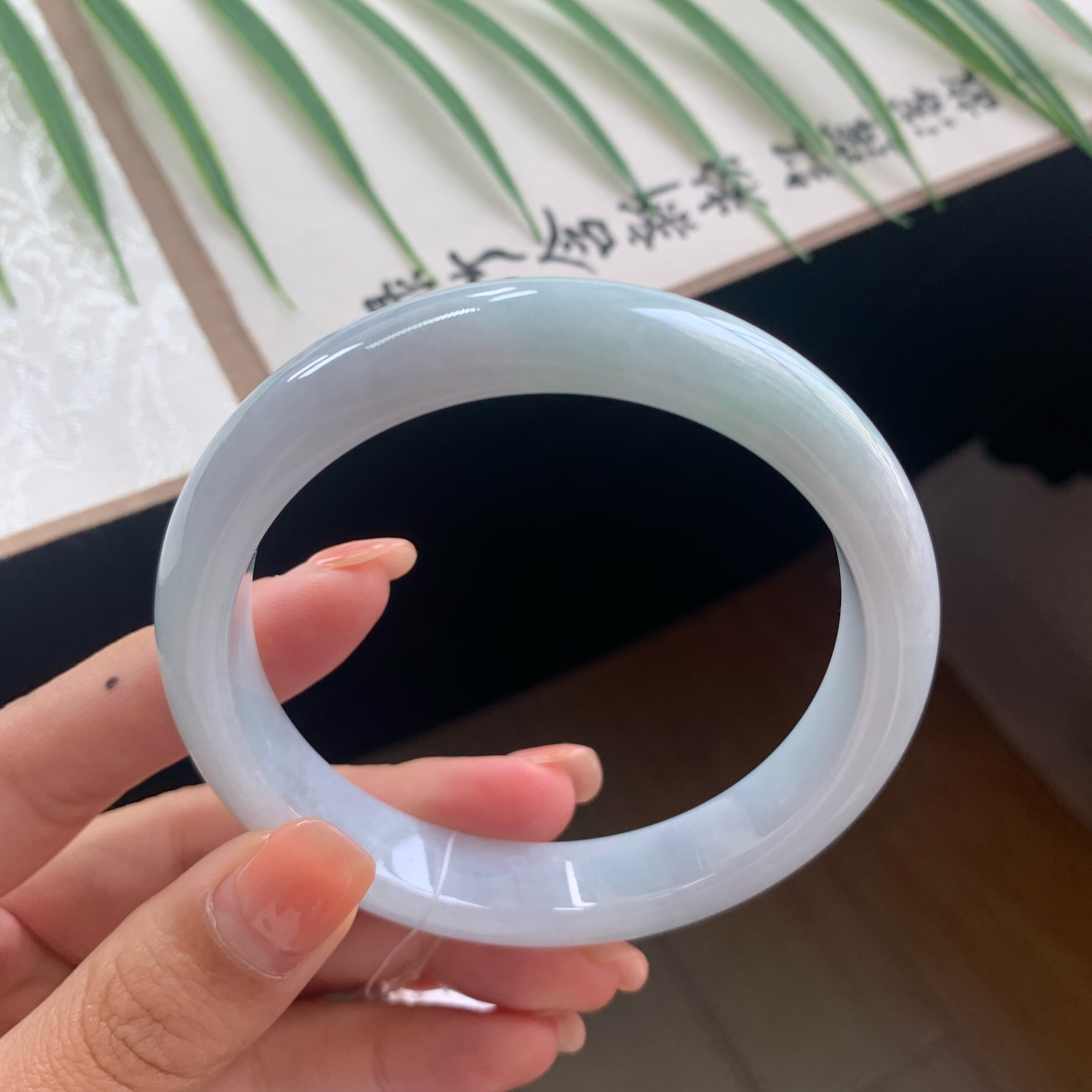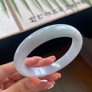 珠宝玉石 和田玉晴水镯子正品 天然新疆青白玉手镯女款 圆条细款