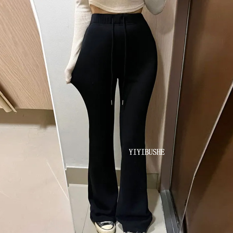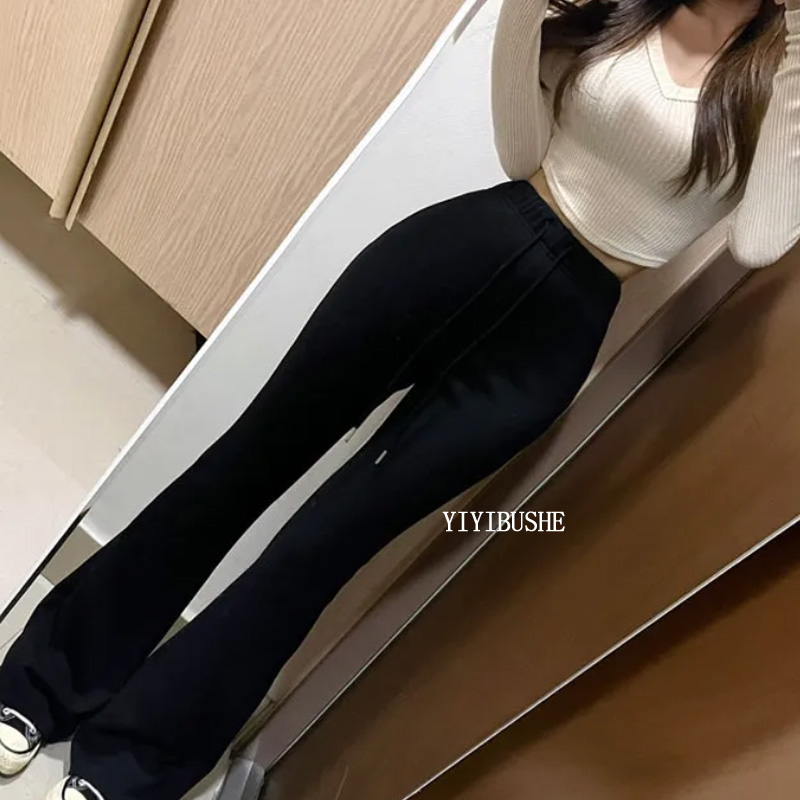 温暖加绒高腰微喇休闲裤 当天发韩国代购 人手一件 PP159冬季 女 正品