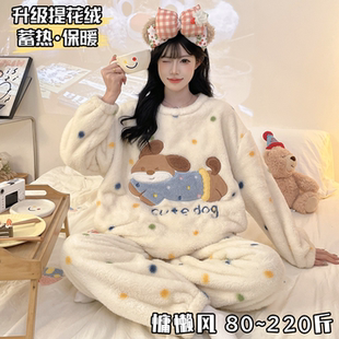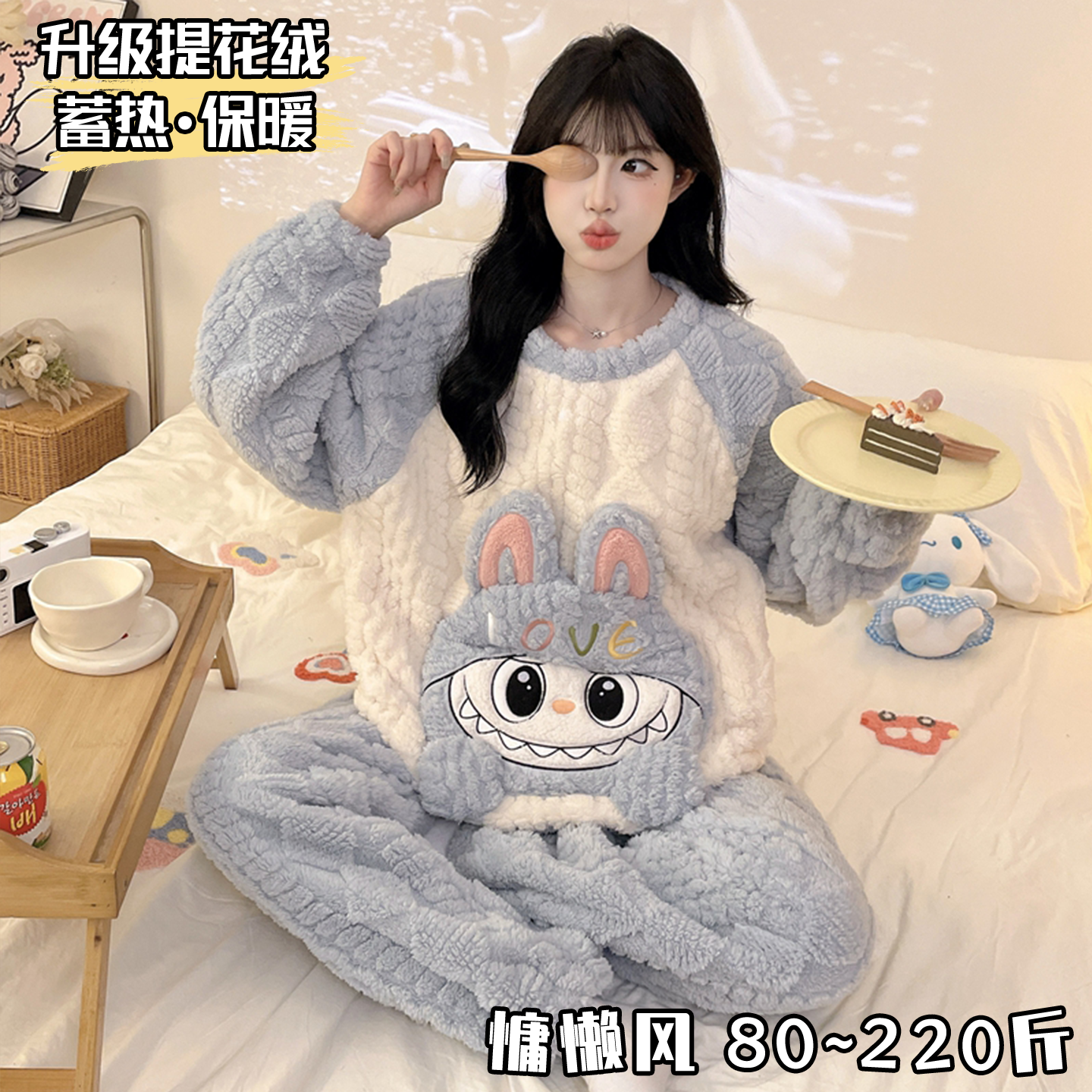 甜美珊瑚绒睡衣保暖加绒加厚可爱套装 可外穿 家居服女生卡通秋冬款