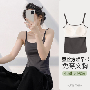 2026新款 内衣5M3925 外贸蚕丝方领吊带背心女带胸垫免穿文胸一体式