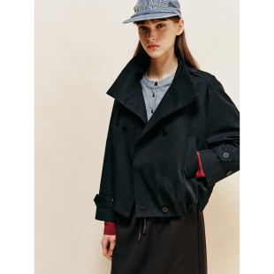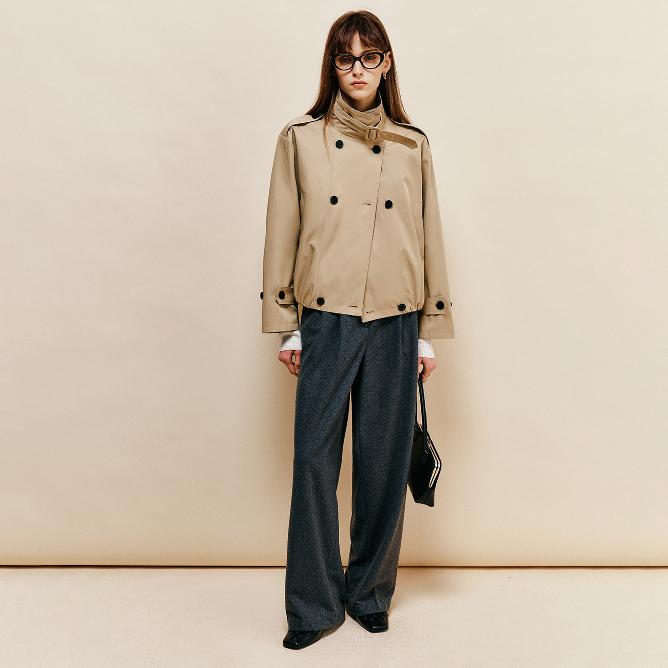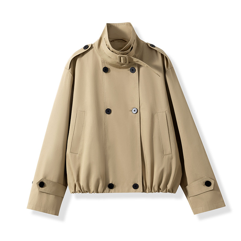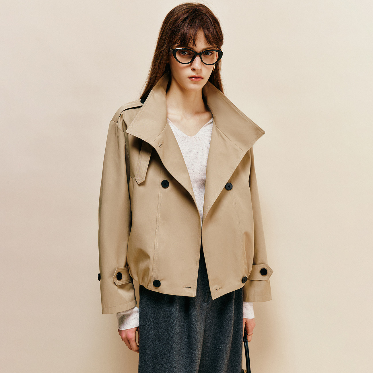 轻工装 精梳斜纹棉 小廓形感立领双排扣风衣短外套 小个子币入