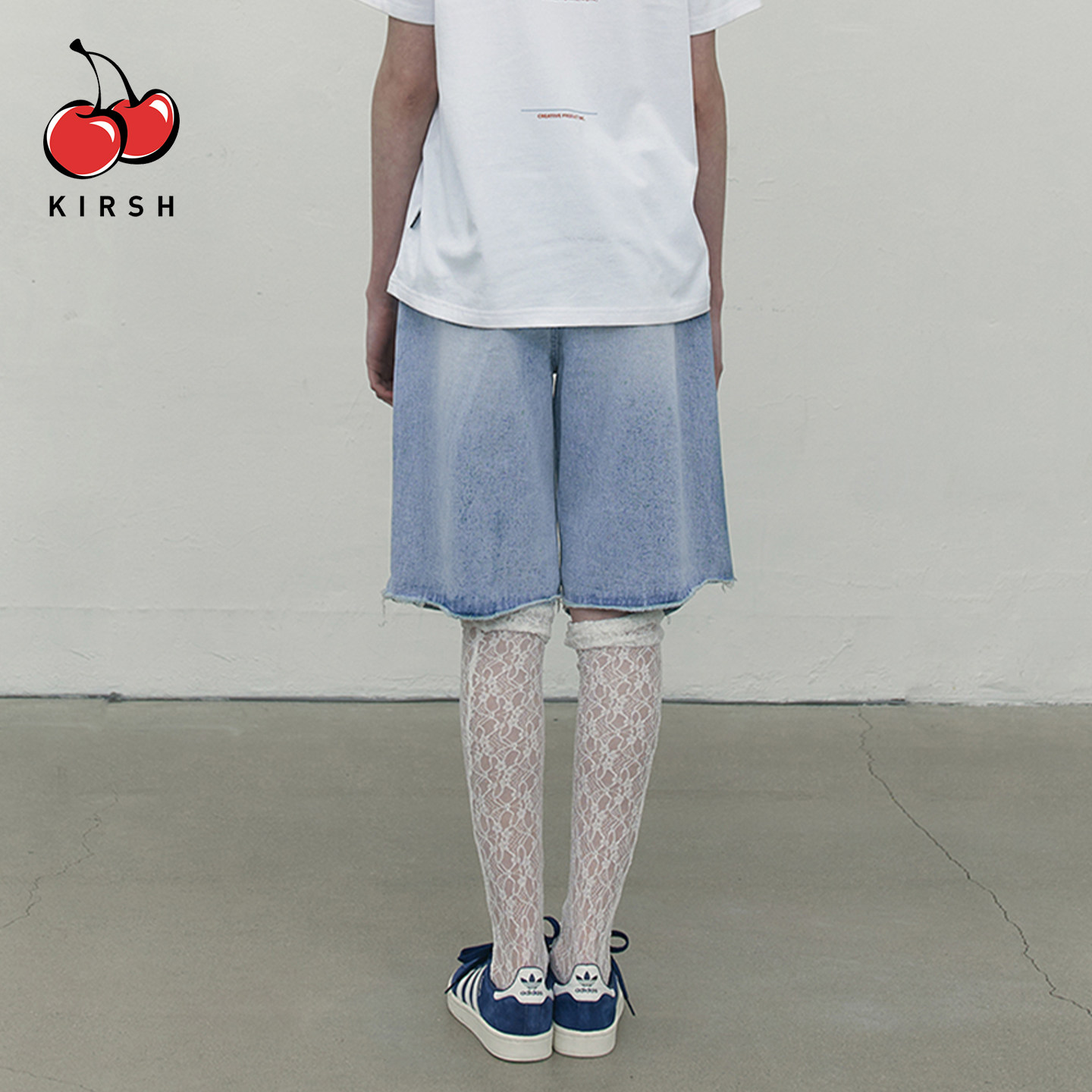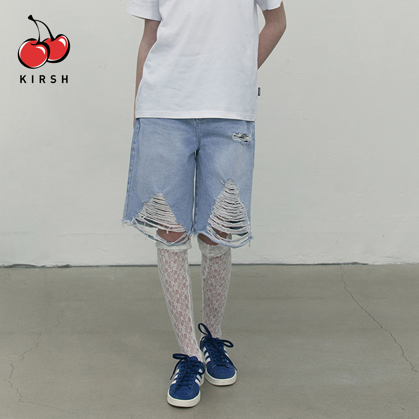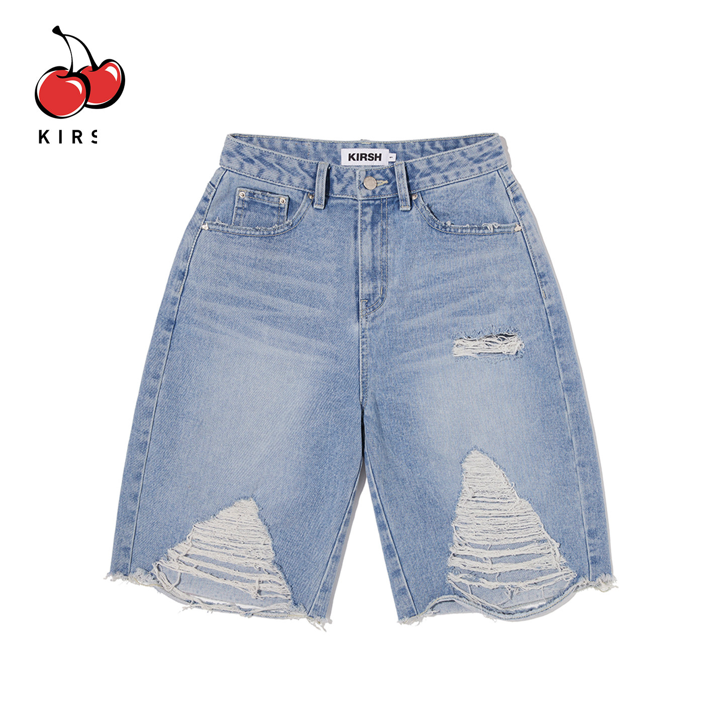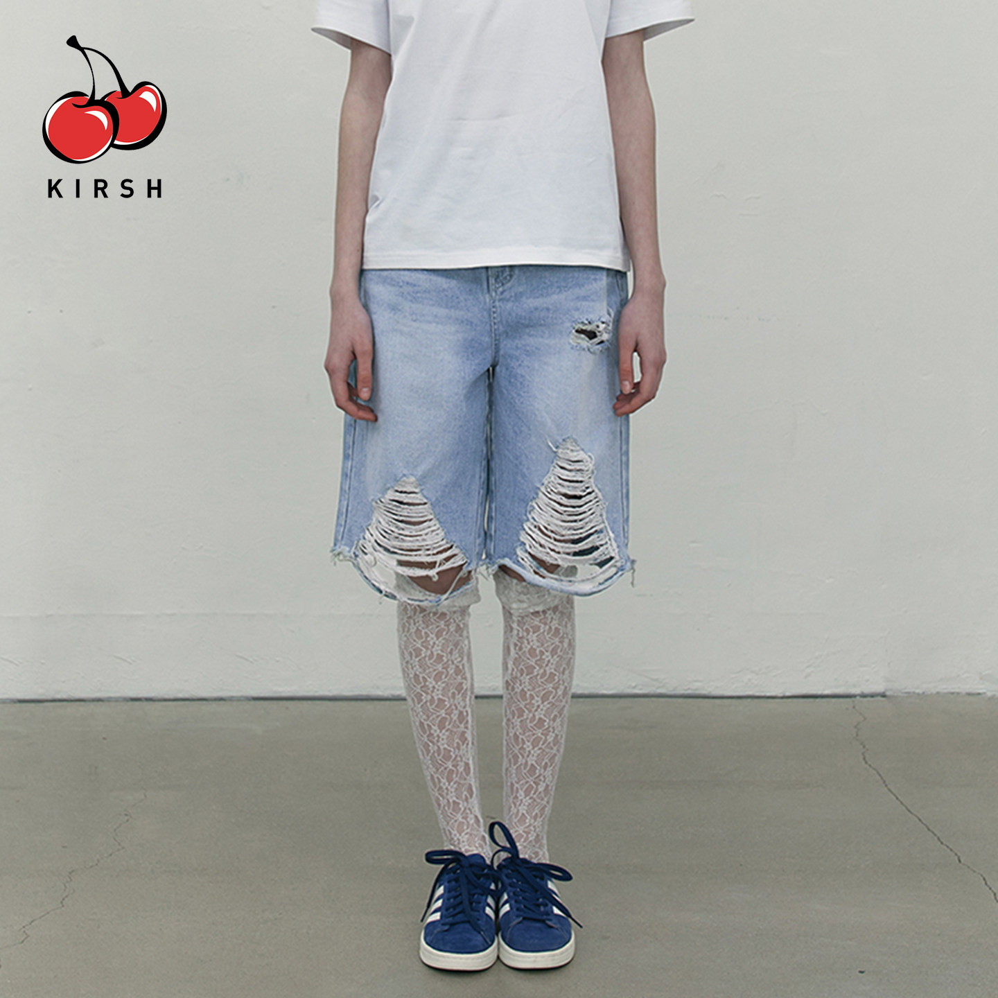 五分裤 女夏2026潮宽松休闲中裤 破洞高腰牛仔短裤 kirsh浅蓝色美式