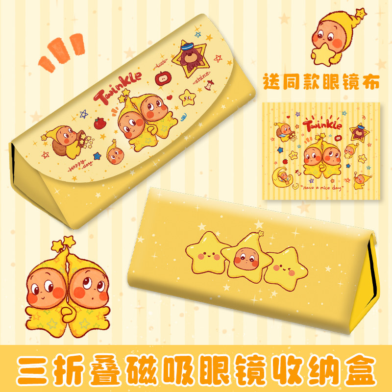 折叠眼镜盒新款 磁吸闭合眼睛盒子防摔学生收纳盒子可爱 便携女款